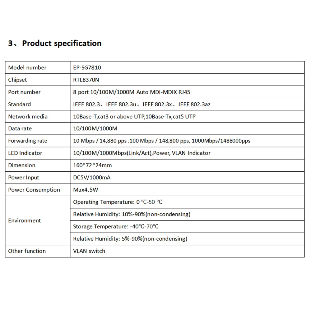 -10/100/1000 Мбит/с Автоматическое согласование RJ45 порты Поддержка Auto-MDI/MDIX