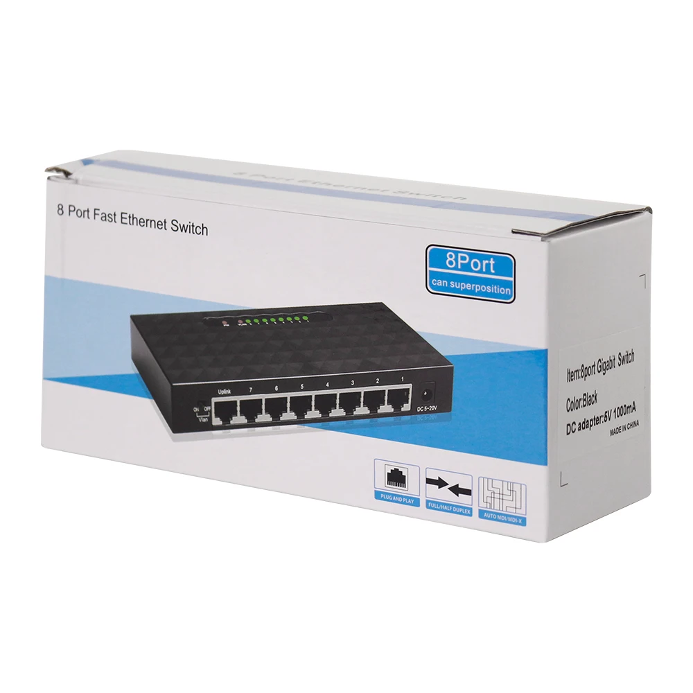 8Порт 10/100M/1000 мАвто MDI-MDIXRJ45