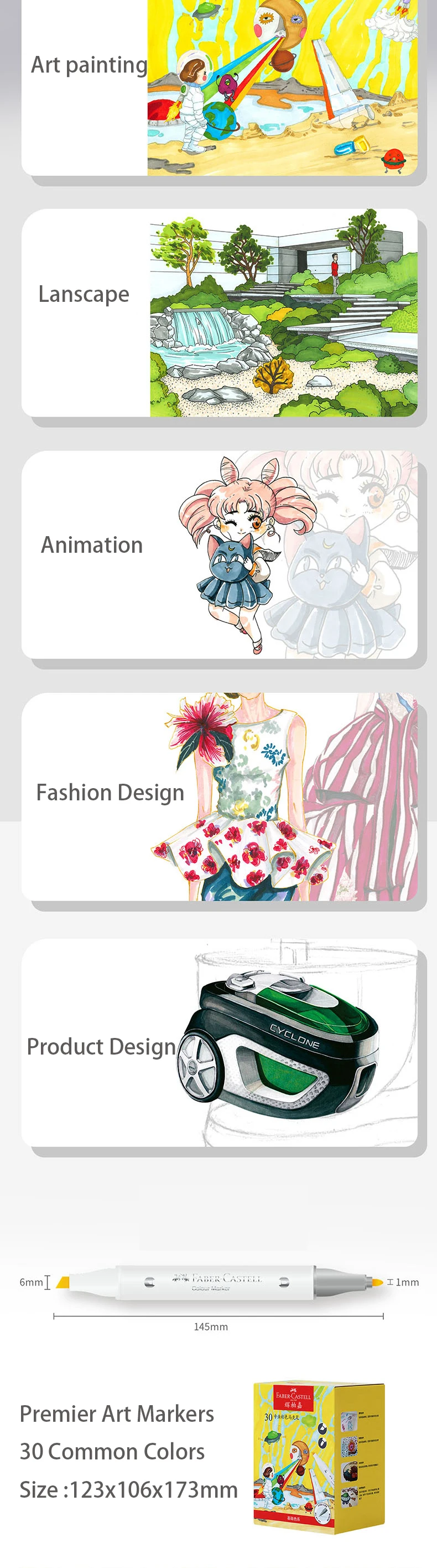 Создавайте красиво выполненные иллюстрации и художественные работы с двумя художественными маркерами faber castel Premier. Подходит для начинающих и опытных художников, эти премиум-маркеры для художников предлагают широкий выбор цветов и имеют двойной наконечник, С тонким наконечником на одном конце для точных линий и долото на другом для покрытия и широких ударов. Улучшенный спирт, чернила на основе красителя дают богатые, гладкие цвета