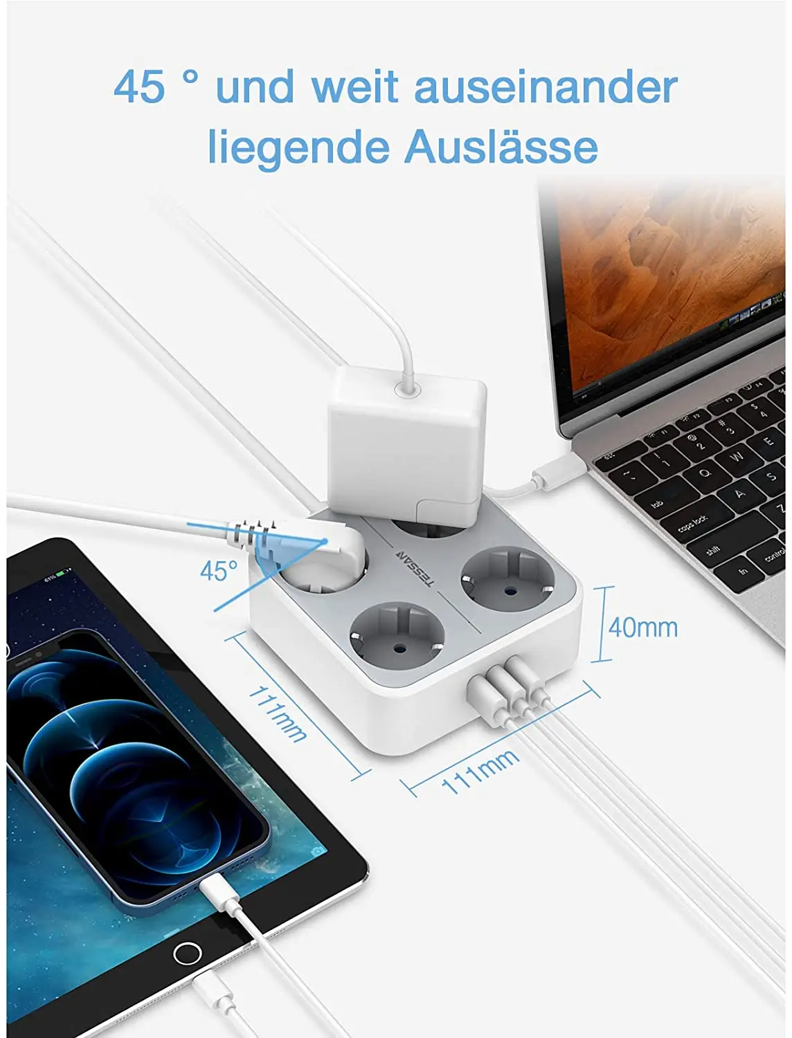 Умная зарядка через USB:Максимальная Совместимость с подключенными устройствами, устройствами Android, Apple series, Kindle u. Благодаря технологии Smart IC каждый порт может автоматически адаптироваться к вашим устройствам, а usb-порты 2.4A всегда быстро загружаются