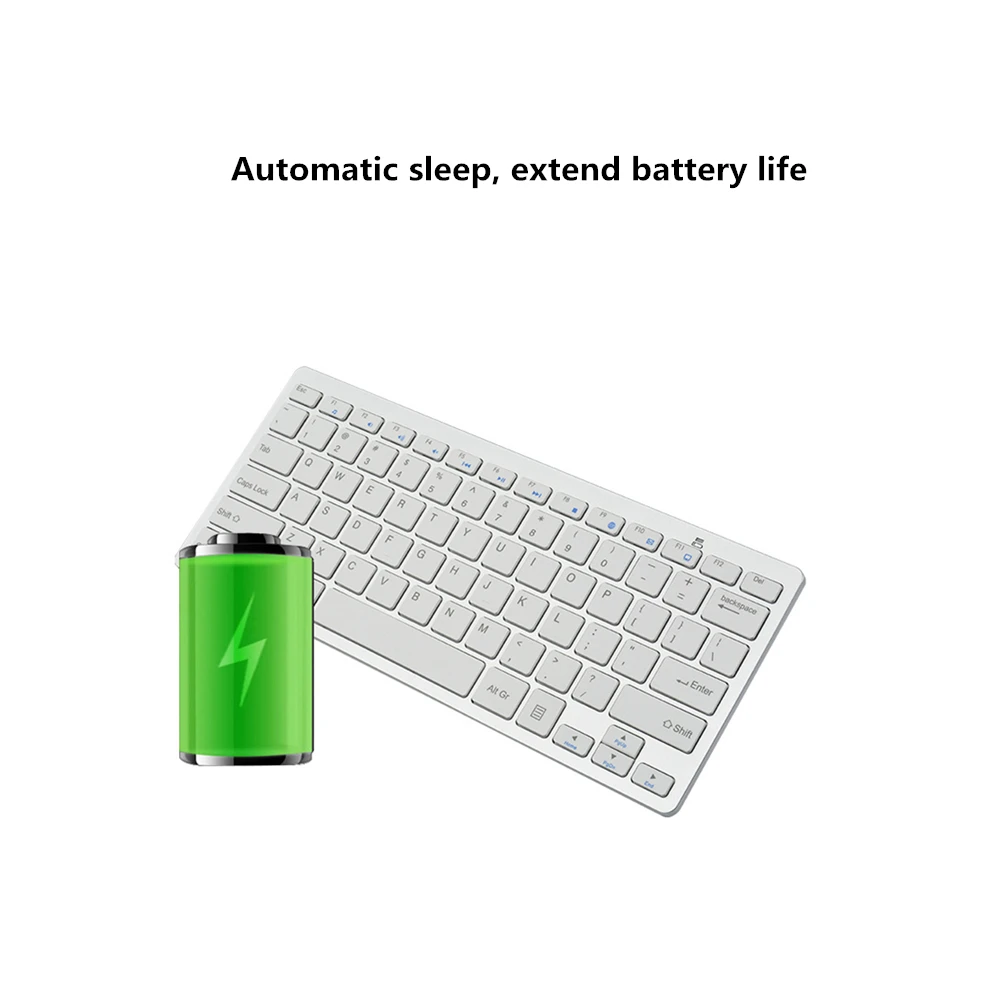 Ультра-тонкий на какую-либо поверхность портативный дизайн: клавиатура не полноразмерная клавиатура, нет 10-ключ цифровая клавиатура, но при этом компактный и легкий клавиатура, простой и стильный, экономия пространства и легко носить с собой. Очень подходит для деловых поездок. Что еще более важно, он также оснащен ультратонкой силиконовой клавиатурой, которая является пыленепроницаемой, защищенной от брызг и износостойкой кнопкой.
