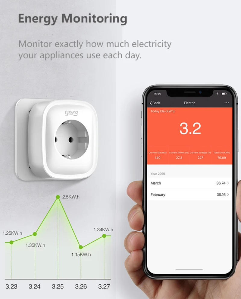 Вы можете контролировать использование энергии и точно проверять мощность устройства.