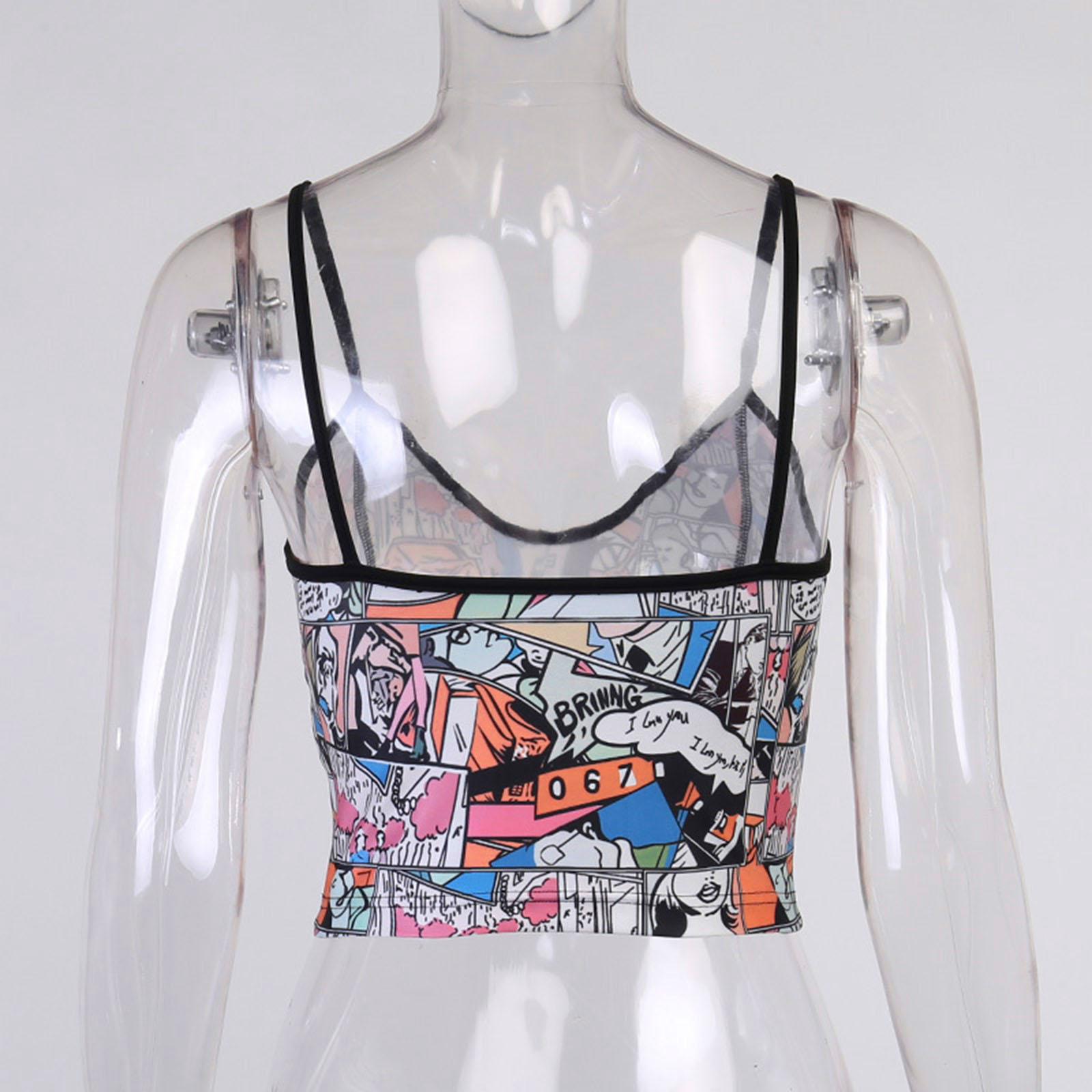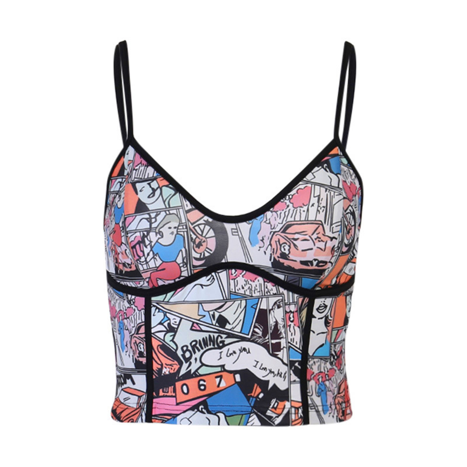 Женский укороченный топ с принтом граффити, v-образным вырезом, без рукавов, летний Повседневный клубный жилет для вечеринки.