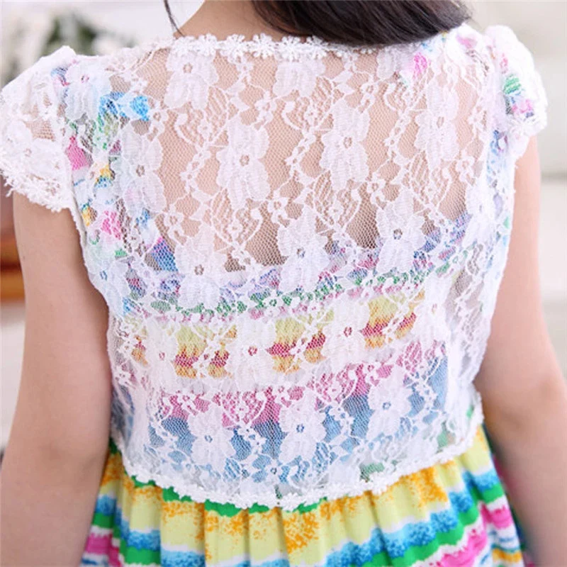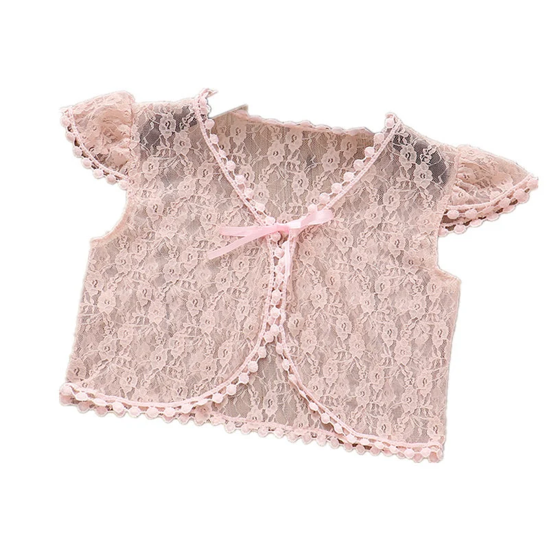 Детское кружевное пальто-шаль для маленьких девочек куртка-болеро на шнуровке короткая верхняя одежда для свадьбы детская модная летняя одежда От 2 до 8 лет, A20