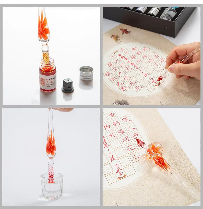 Дизайн 7-12: 1 * стеклянная ручка, 4 * чернила (7 мл), 1 * держатель ручки, 1 * чашка для мытья