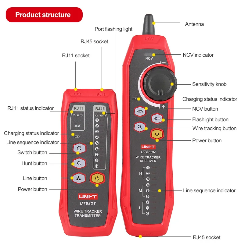 UNI-T UT683KIT трассировщик проводов сетевой кабель трекер Lan тестер RJ45 RJ11 обнаружитель телефонной проводки тестер инструмент для ремонта