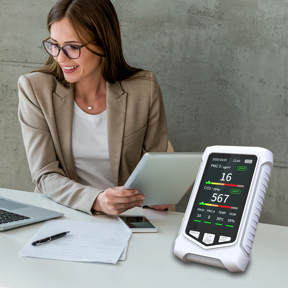 -Диапазон обнаружения: PM2.5 (0-999 ug/M³) CO2 ( 400-5000 ppm)