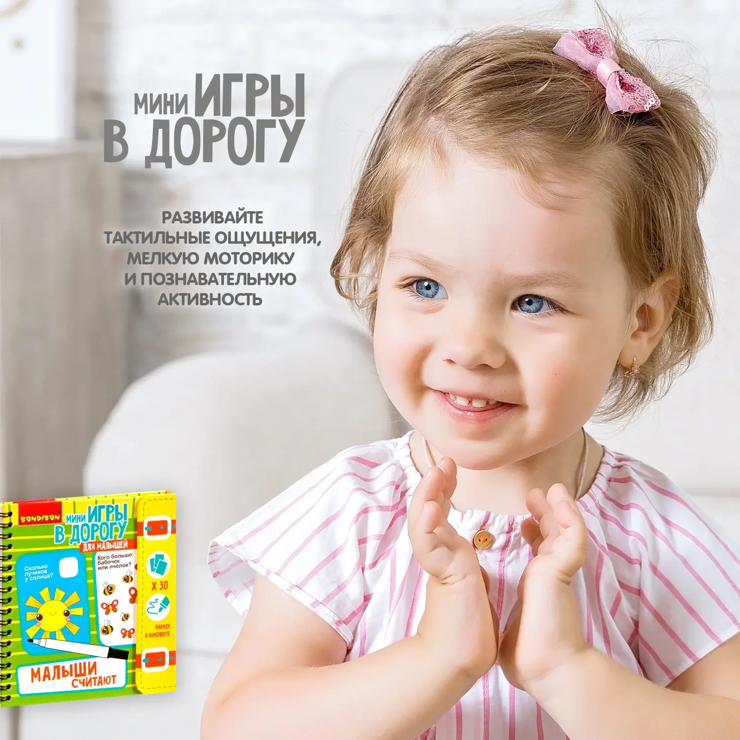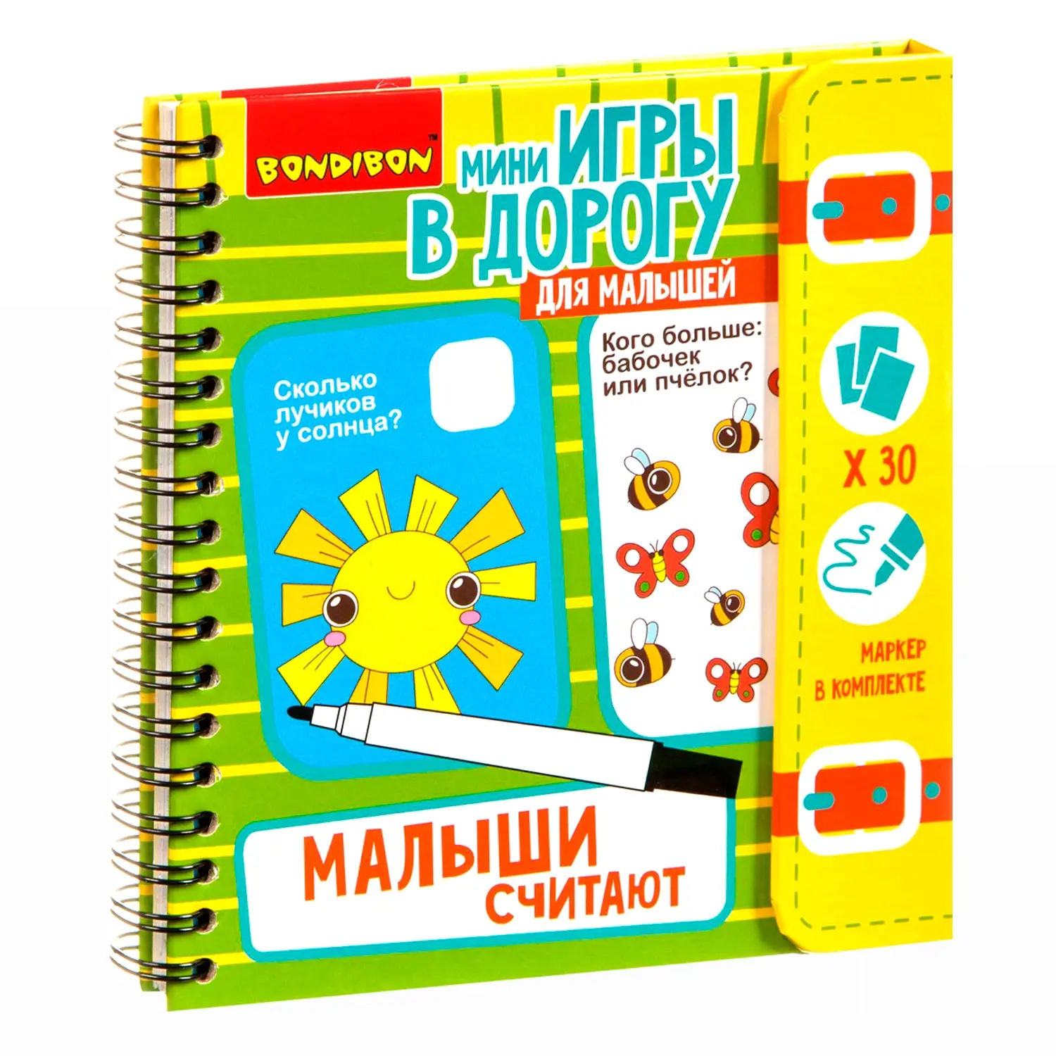 DescriptionМалыши считают - это разнообразные красочные задания, которые помогут сделать первые шаги в изучении цифр и чисел, а также порадуют вашего малыша забавными и милыми рисунками! В увлекательной игровой форме отрабатывается счет от 1 до 10, написание и визуальное отображение цифр и чисел, понятия много - мало, простые примеры на сложение и вычитание. Дополнительно, к каждой карточке можно придумывать новые задачки на счет самостоятельно, усложняя их по мере необходимости. Забудьте о скучных путешествиях вместе с замечательными мини-играми в дорогу от BONDIBON! Красочные и компактные, они будут идеальными спутниками для маленького непоседы. Очень важно развивать у малыша внимание, усидчивость и логику. А лучше делать все это во время увлекательной игры!характеристики
