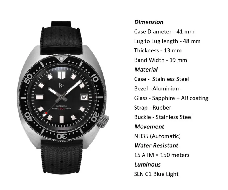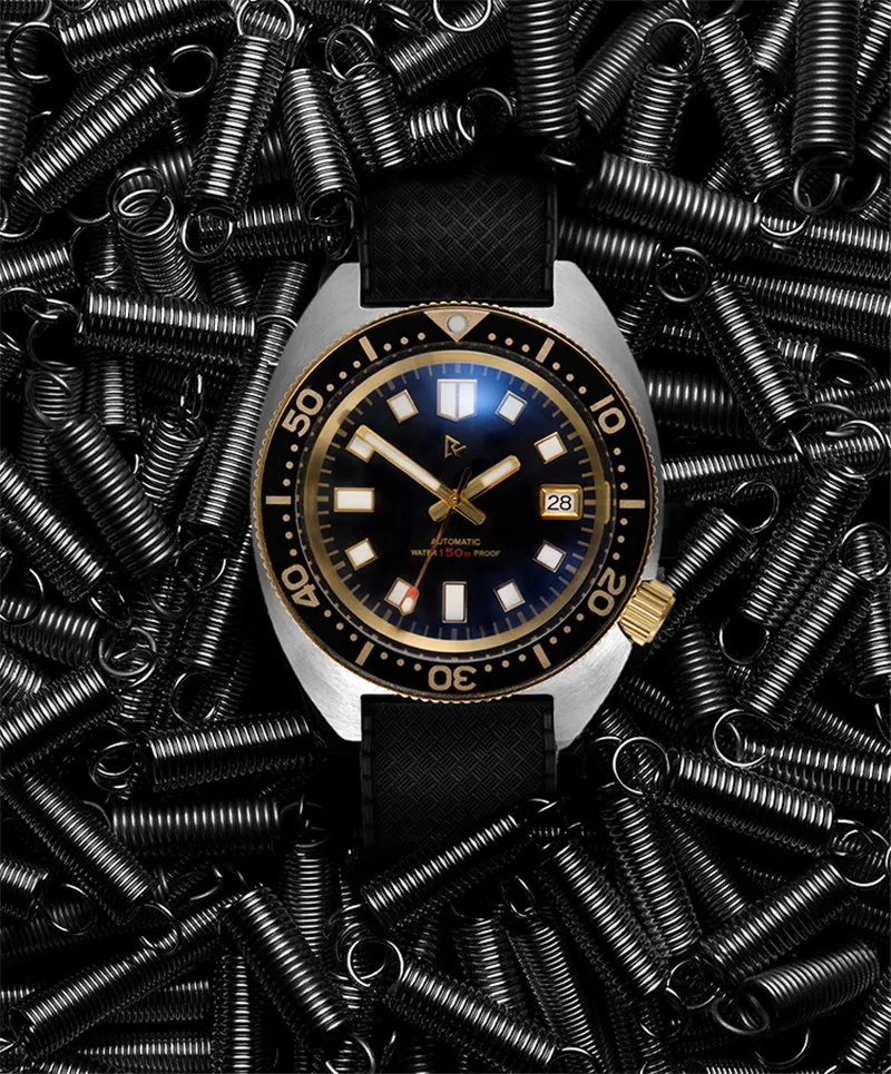 RDUNAE Diver Мужские часы из нержавеющей стали автоматический NH35A сапфир резиновый ремешок сапфир алюминиевый ободок C1 светящийся календарь