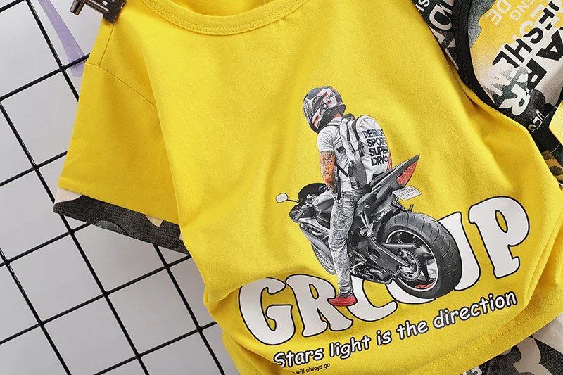 Новая летняя детская одежда с героями мультфильмов модная футболка для маленьких мальчиков и девочек, шорты 2 шт./компл., детская одежда для младенцев Спортивная одежда для малышей, для От 2 до 5 лет
