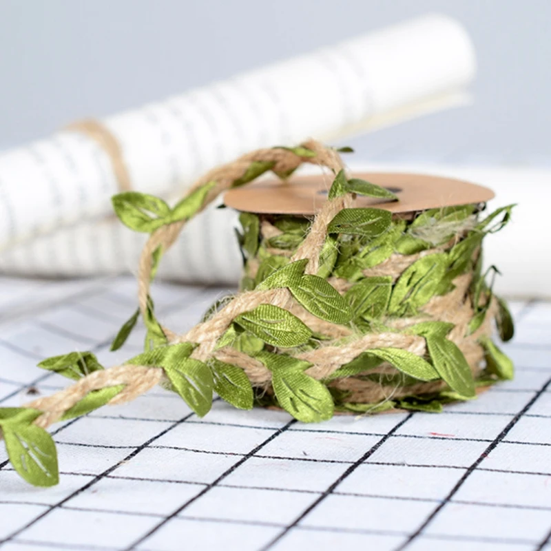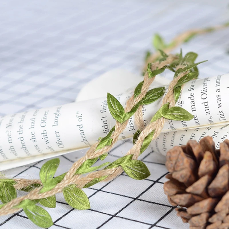 Веревка из конопляной ткани с зеленым листом, простая ретро-веревка, веревка из конопляной ткани, в основном используется для креативного домашнего украшения, модного украшения, ручной работы, украшения ювелирных изделий и т. д.