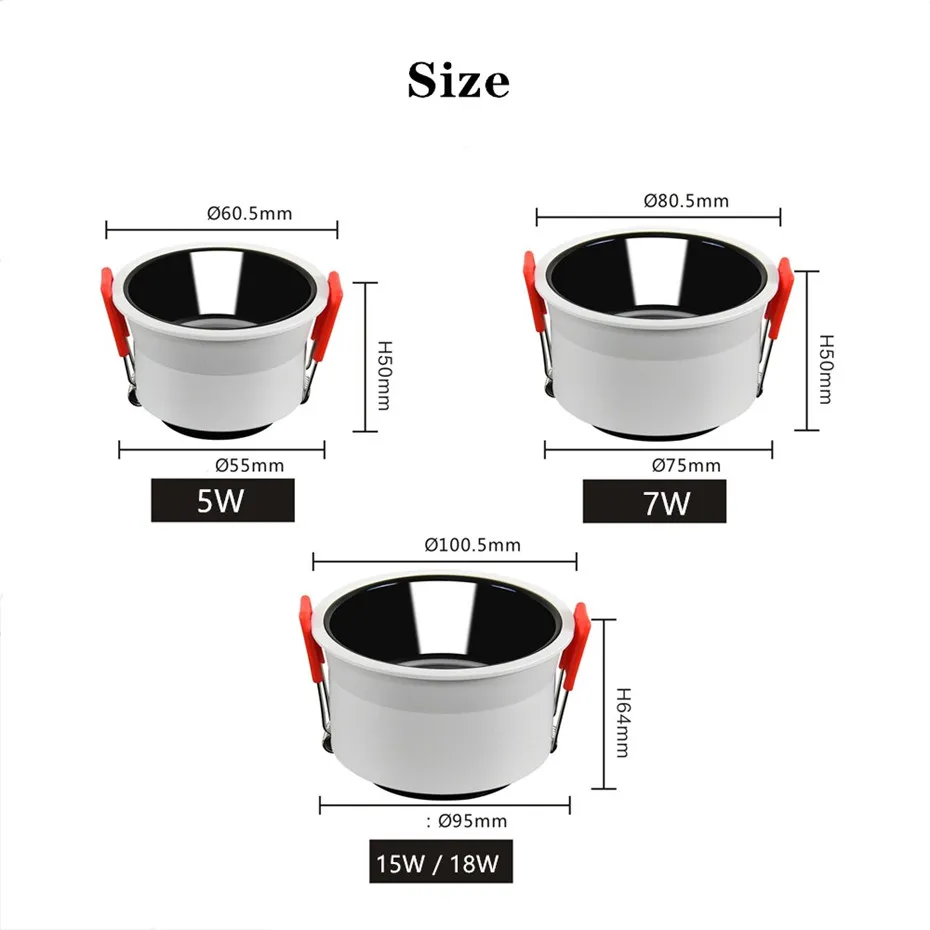 Характеристики:100% Новый брендВход: AC85-265VМатериал корпуса: высококачественный алюминий, устойчивый и прочный.Быстрое отведение тепла.Длительная работа.Потребляемая мощность: 5 Вт 7 Вт 12 Вт 15 ВтСветодиодный источник светильник/Количество (шт.): Высокий люмен Cree, светодиодный чип epistarЛюмен (лм): 95-110 лм/ВтРабочая температура. : -25 градусов Цельсия-+ 50 градусов ЦельсияИндекс цветопередачи: Ra >82Цвет светильник Холодный белый (6000-6500K)Теплый белый (3000-3500K)Естественный белый (4000-4500K)