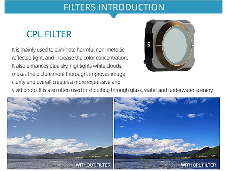 Благодаря ограничениям традиционных фильтров ND-PL фильтр сочетает в себе преимущества ND и CPL для удовлетворения ваших потребностей в продлении времени экспозиции и устранении нежелательного поляризованного светильник, что делает себя мощным инструментом для ландшафтной фотографии.