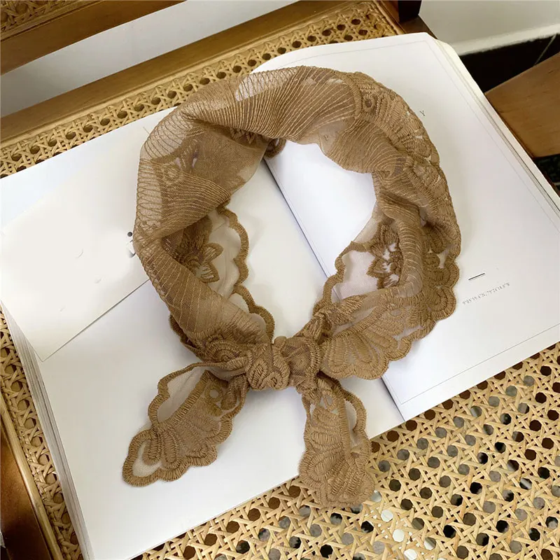 Женский треугольный шарф, однотонная бандана, вязаная крючком небольшая шаль с цветочной вышивкой, Женская резинка для волос