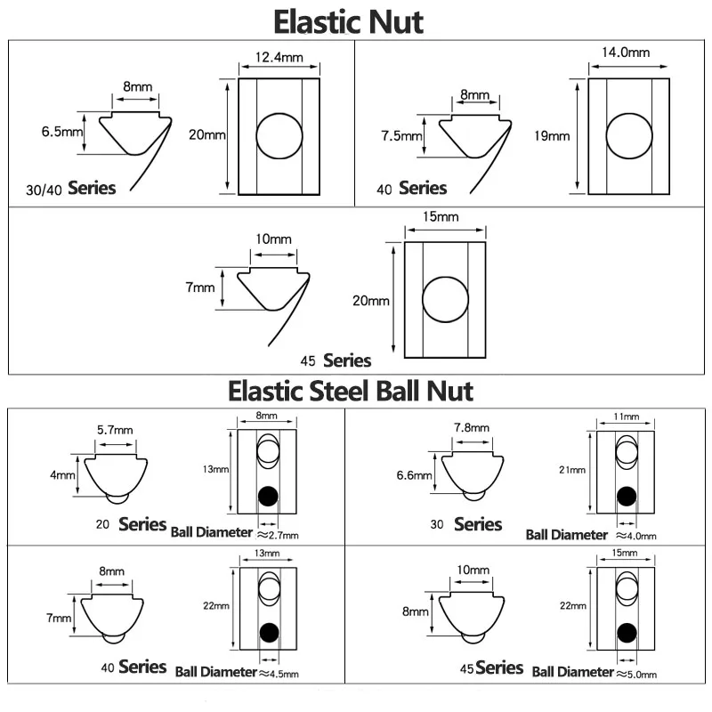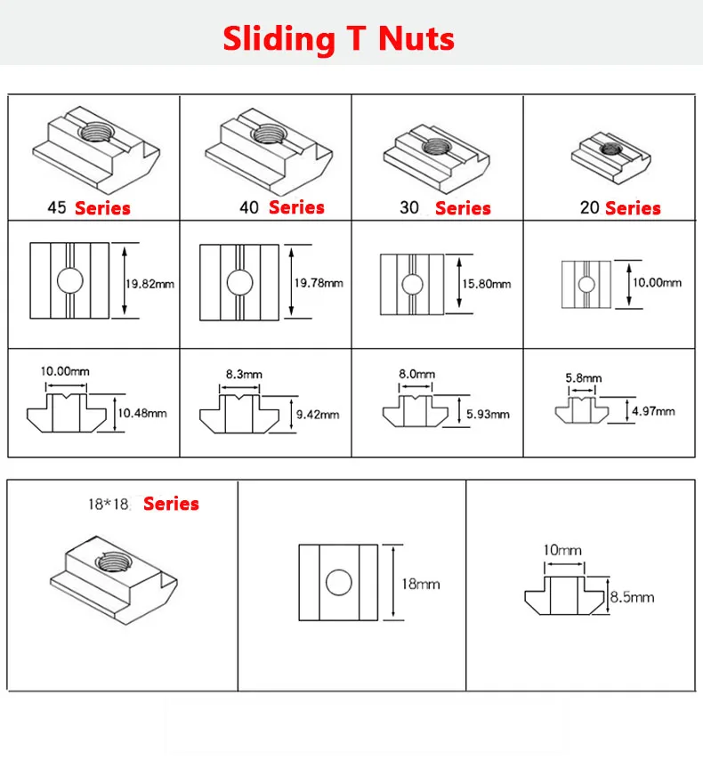 Пример: 20 серий представляют длину, ширину и высоту гайки, а М3-диаметр гайки;