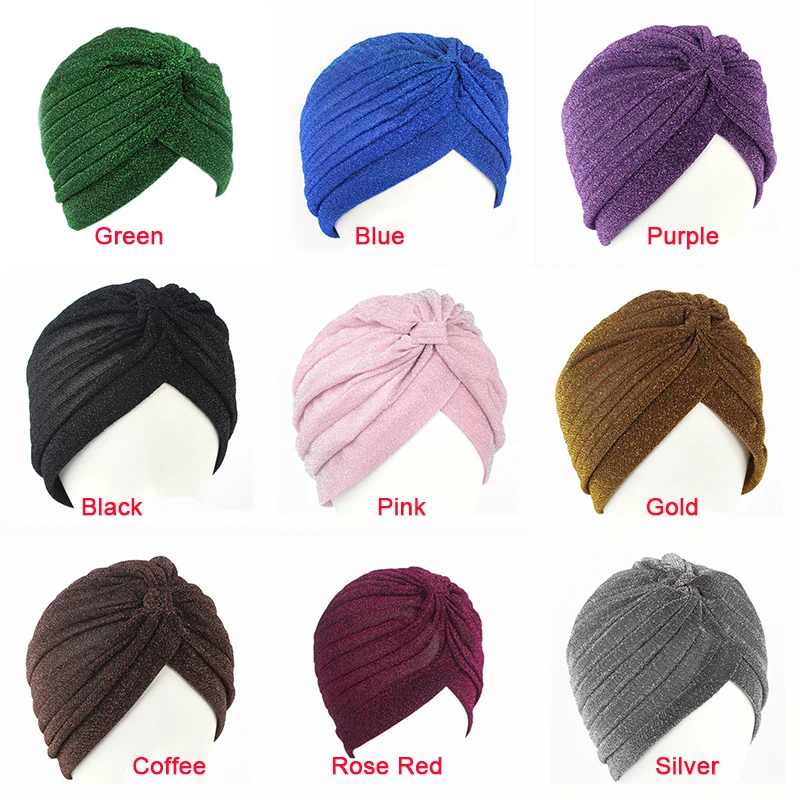 1 шт., Золотая яркая шелковая шляпа, мусульманский тюрбан, Женская эластичная мягкая тюрбан в индийском стиле, головной убор для взрослых, банданы, горячая Распродажа 2020