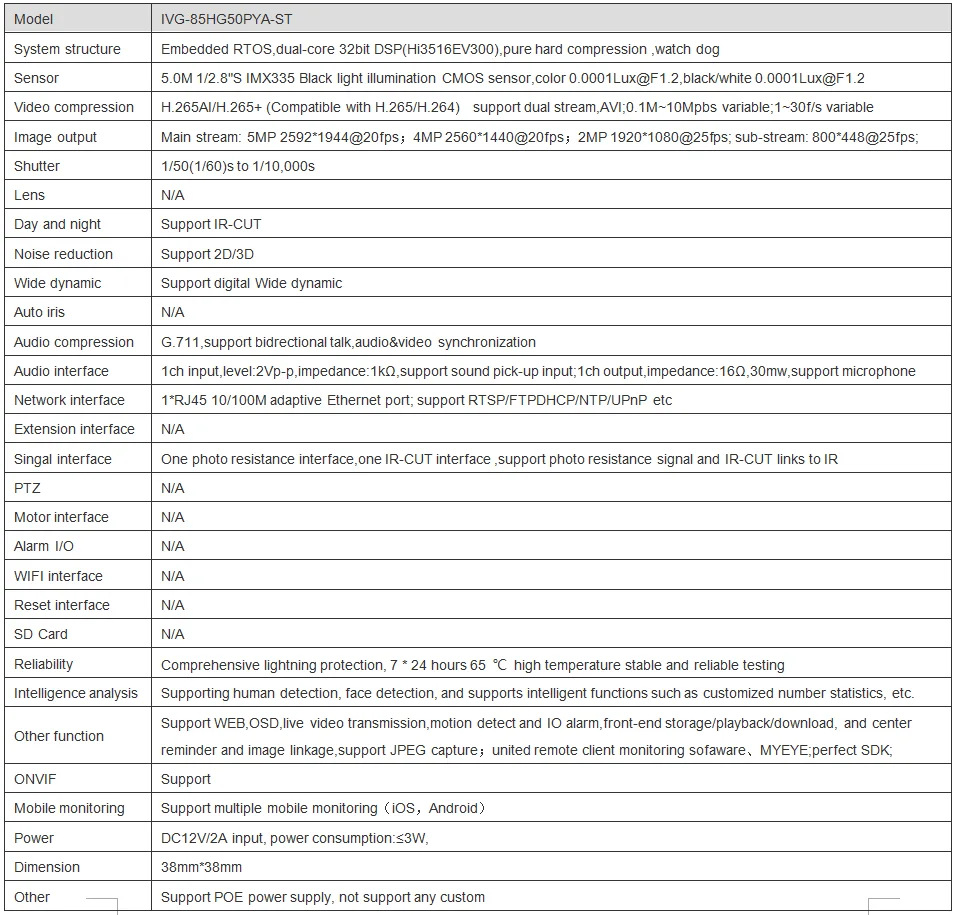 Расширенный H.265AI/H.265 + (совместим с H.265/H.264) Сжатие видео, супер низкая скорость, высокое качество изображения;