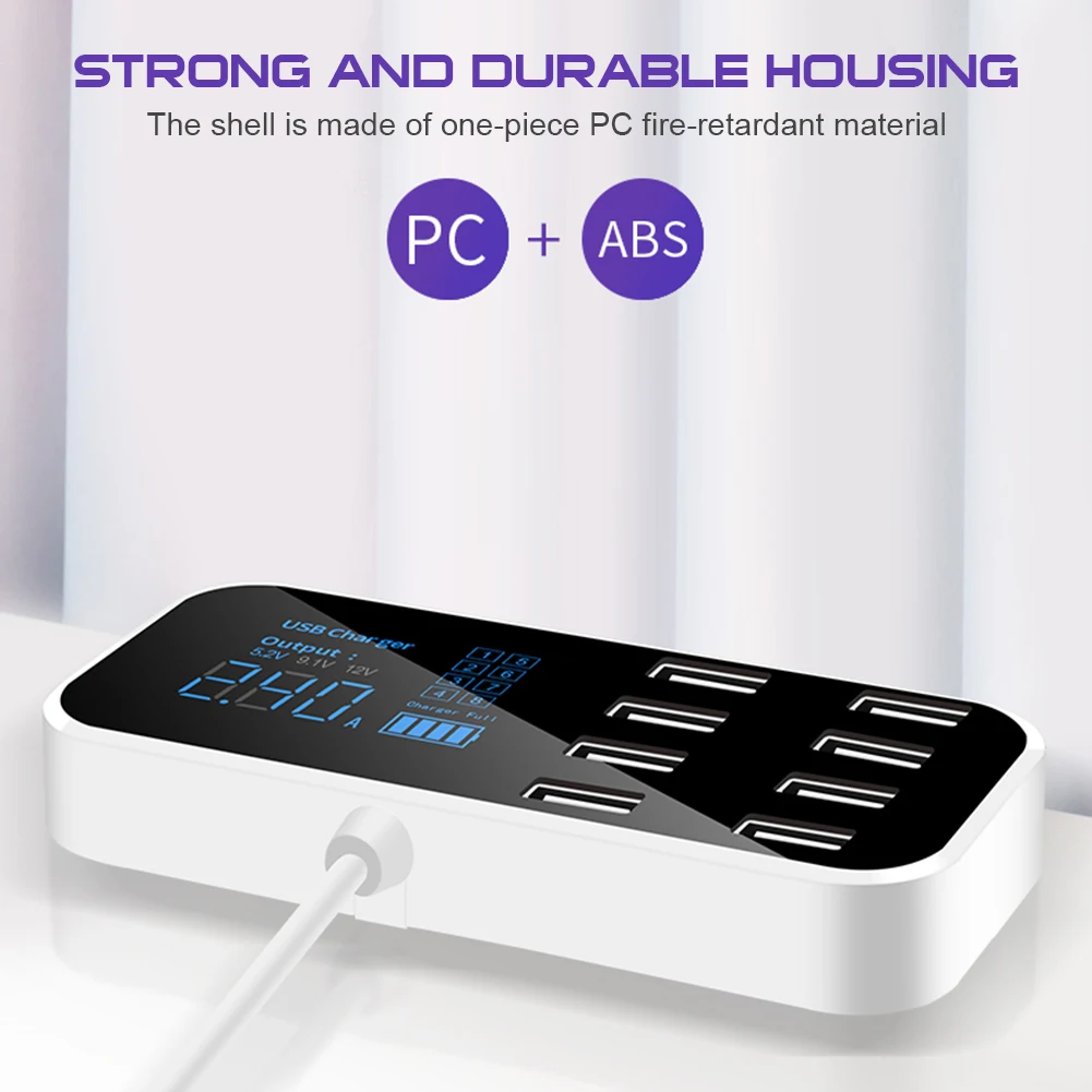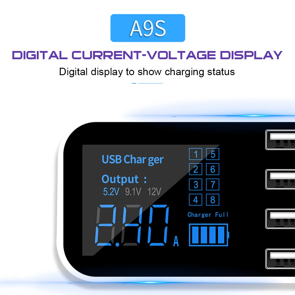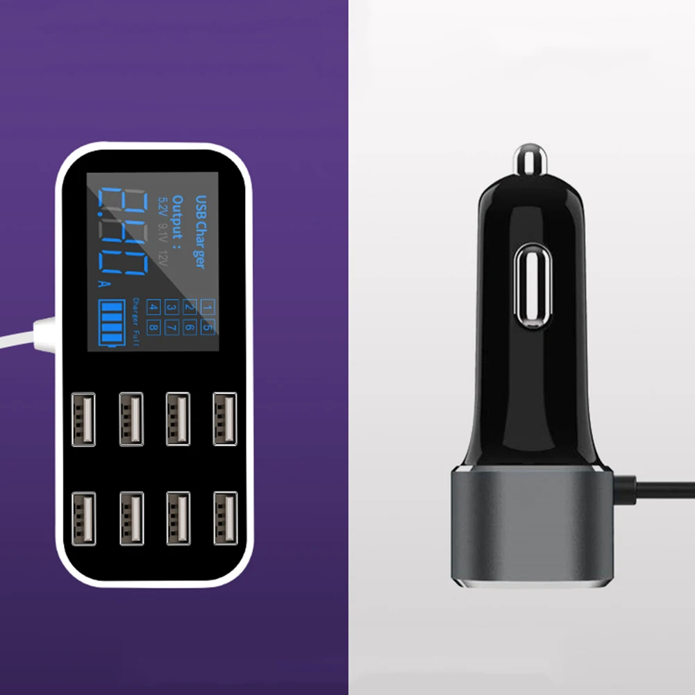 8 портов USB Автомобильное зарядное устройство Быстрая зарядка зарядное устройство для телефона 40 Вт 2.4A Мульти USB розетка со светодиодным дисплеем для iPhone Android Samsung