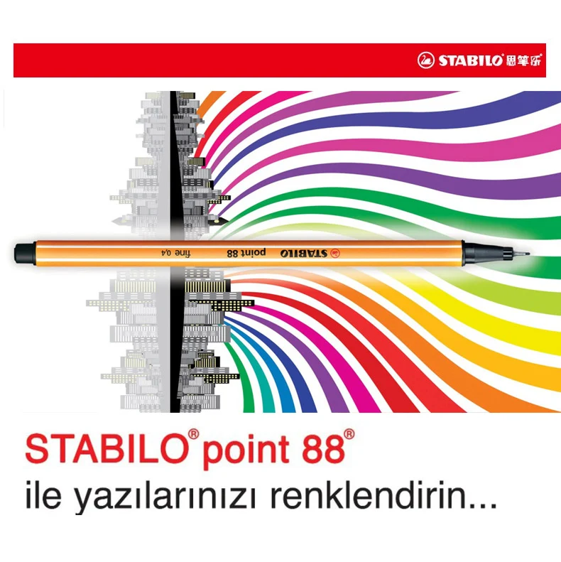 1 шт., художественный маркер STABILO Point 88, 0,4 мм, волоконный наконечник, 25 цветов, ручки для письма набросок рисунок