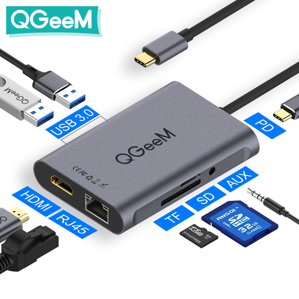 Универсальное решение для ваших ноутбуков и планшетов Type-C, подключите больше к док-станции QGeeM 9-in-1 USB C