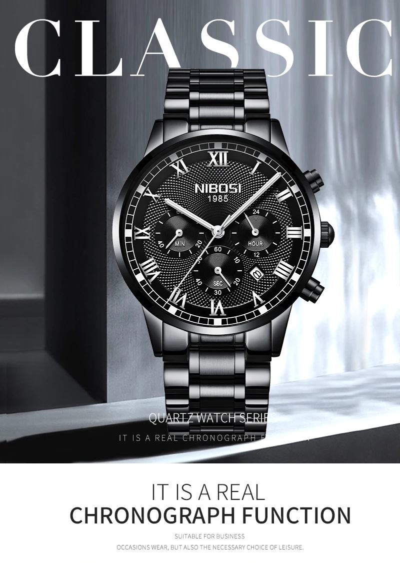 NIBOSI мужские часы Топ бренд класса люкс известный кварцевые часы мужские водонепроницаемые Rattrapante хронограф военный Relogio Masculino