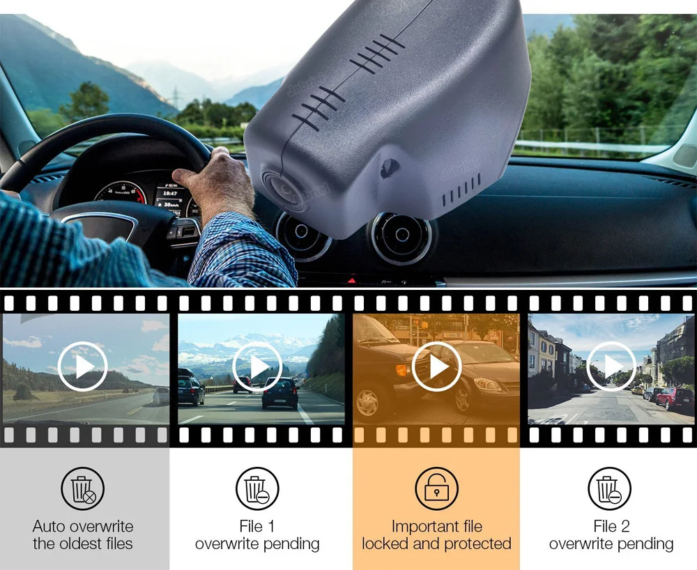 Cycle Recording without leaking seconds Video segmentationrecording, when the video is full, the recorder will automaticallydelete the previously recorded video clips and record them ina loop, so that you don't have to worry about frequent card changes.