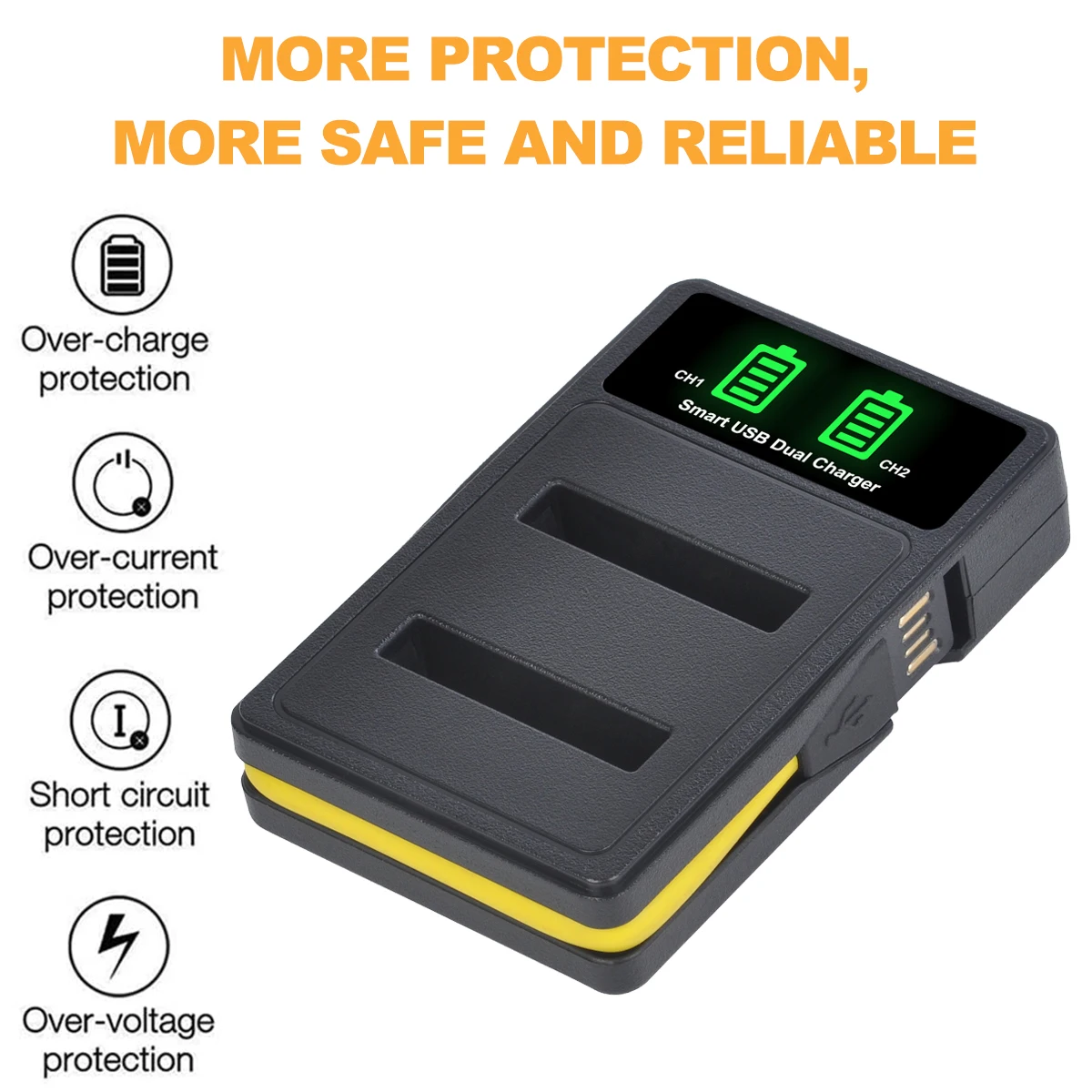 -Удобное Зарядное устройство позволяет легко заряжать обе резервные батареи одновременно с помощью только одного зарядного кабеля.