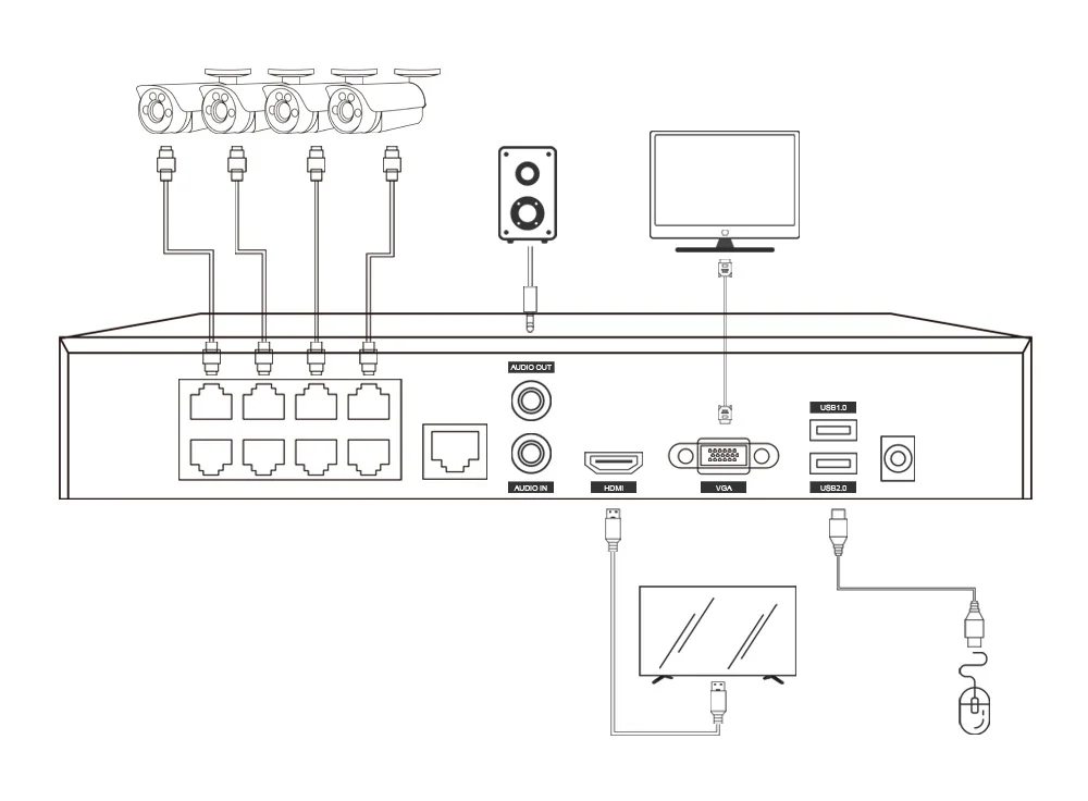 Для передачи видеосигнала и одновременного питания камеры необходим только один Ethernet кабель, поэтому вам не нужно использовать отдельный адаптер питания для подключения каждой камеры к ближайшему источнику питания. Безопасная, Стабильная и надежная передача питания всегда гарантируется.