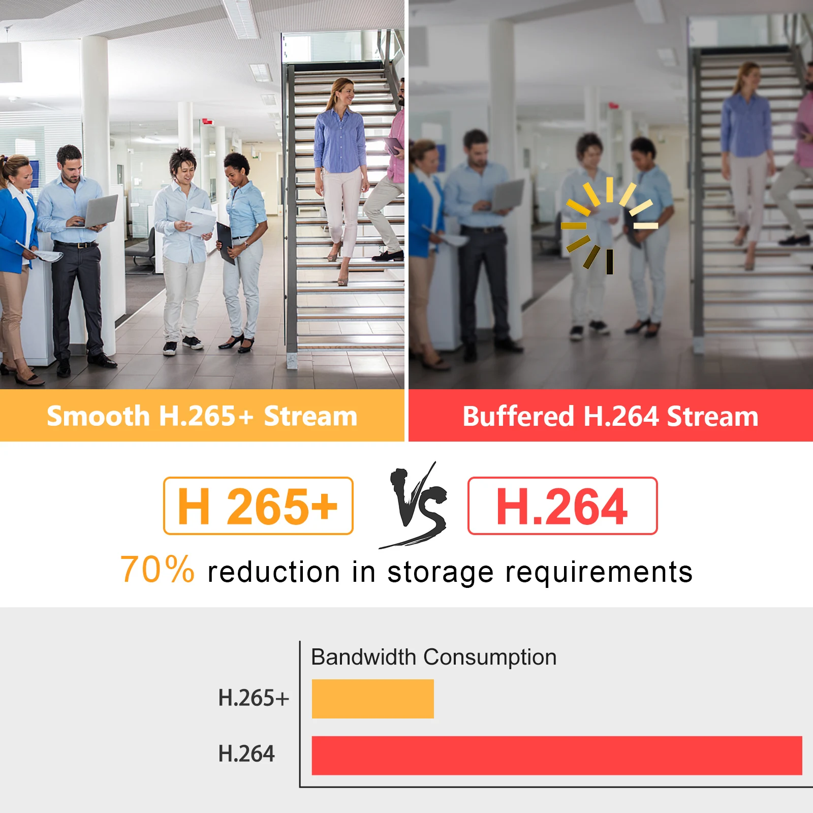 (H.265 +Технология сокращает скорость передачи бит и требования к хранению до 70 при сравнении со стандартом сжатия видео H265)