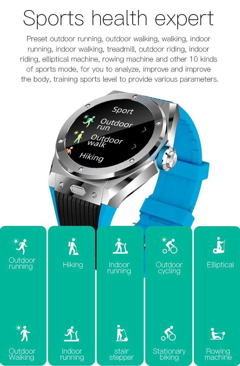 Поддержка спортивного режима (открытый бег/Прогулки на открытом воздухе/Пешие прогулки/Крытый бег/прогулки в помещении/лестницы шаговый/открытый cycel/стационарный велосипед/эллиптический/гребная машина)