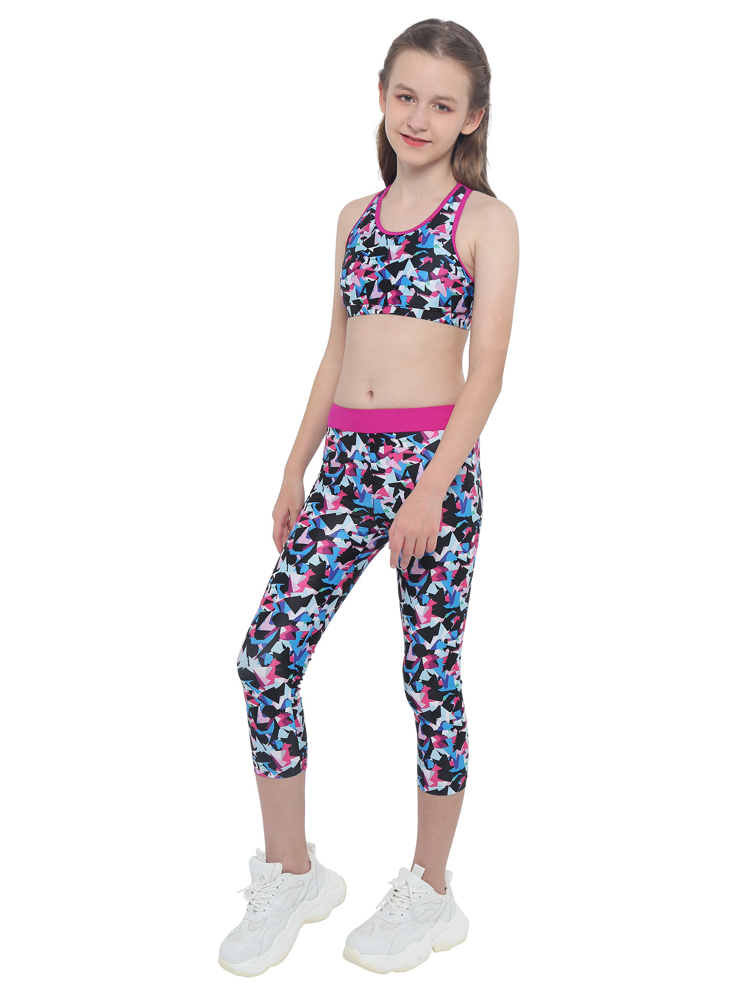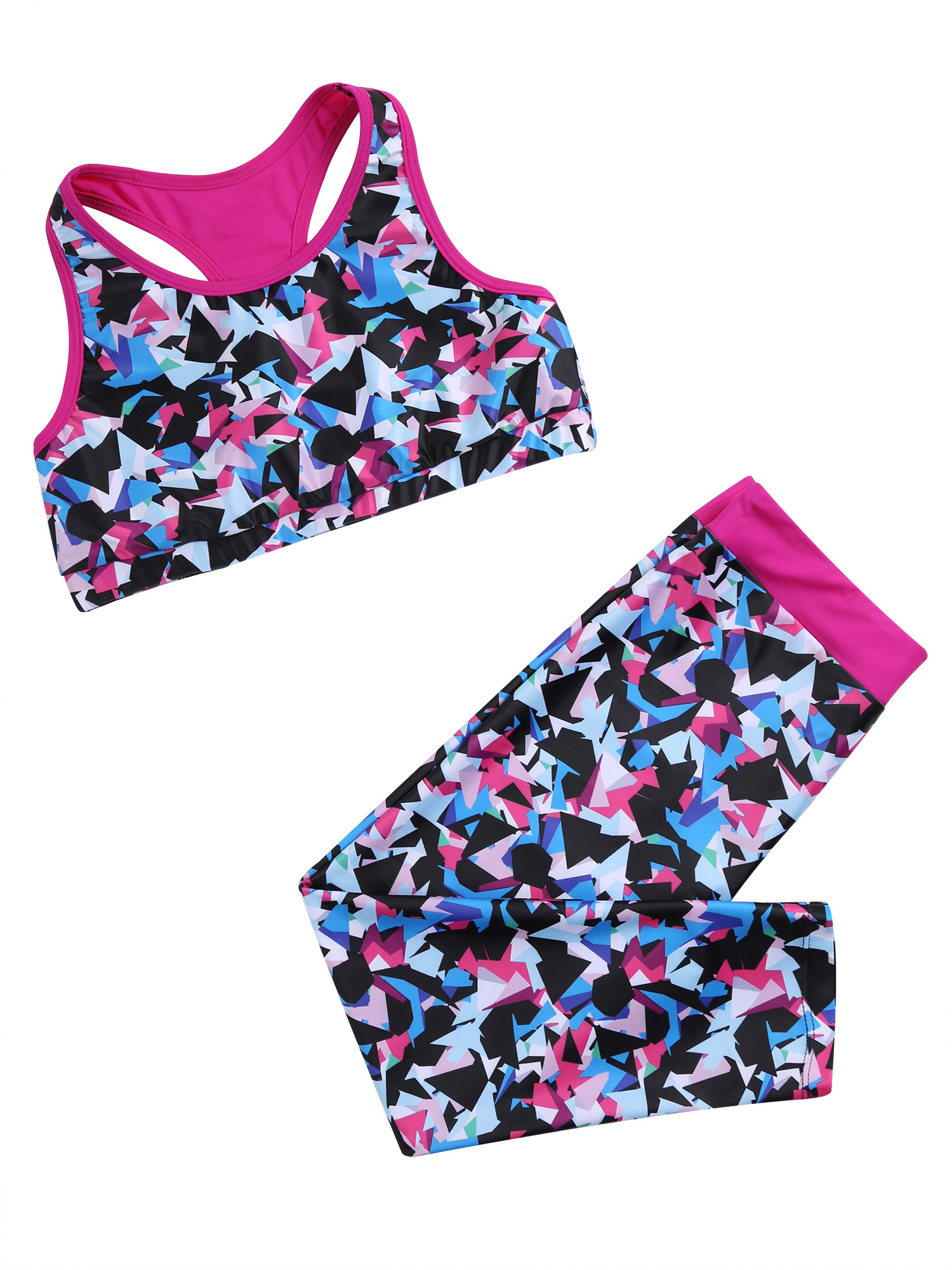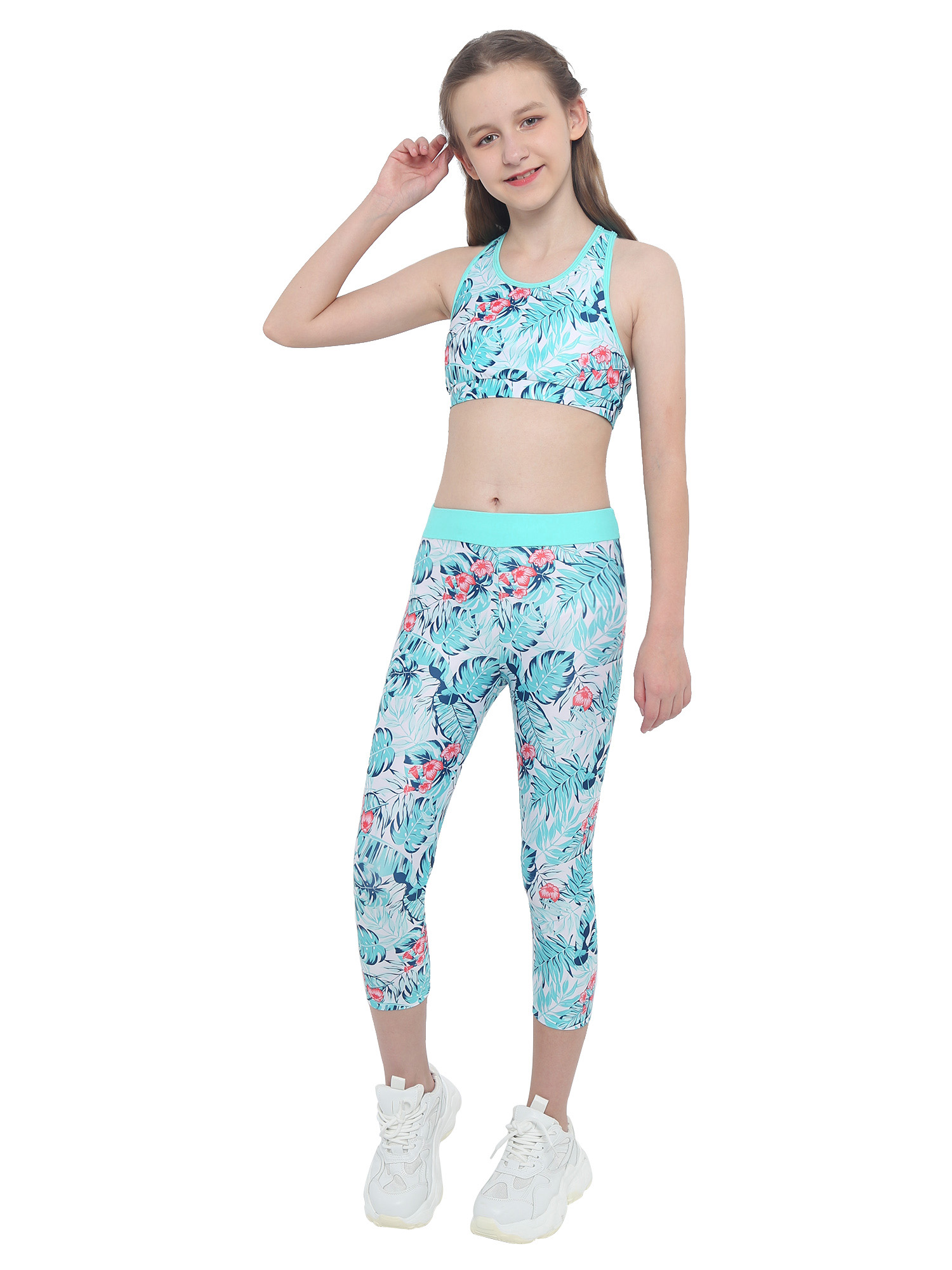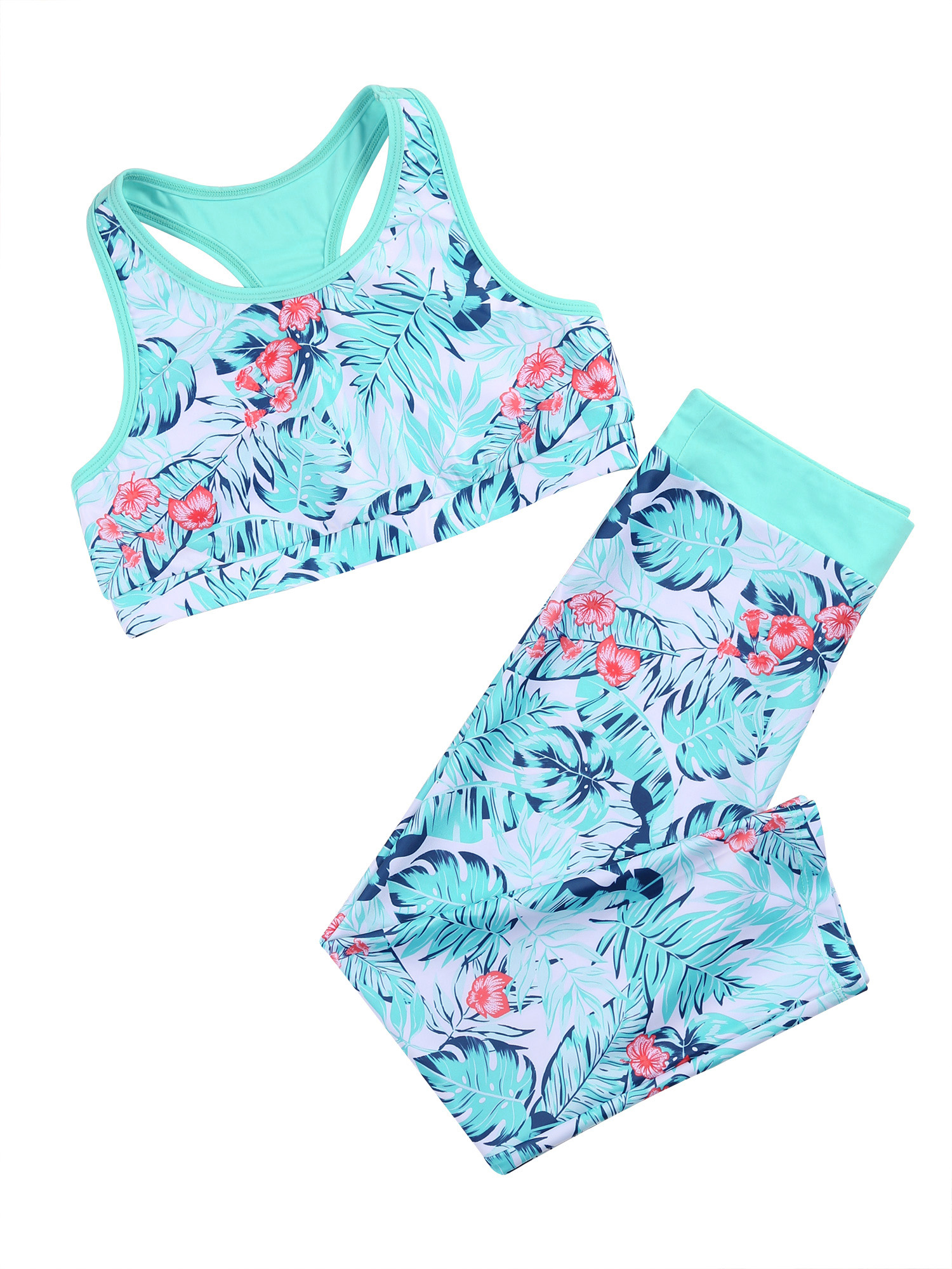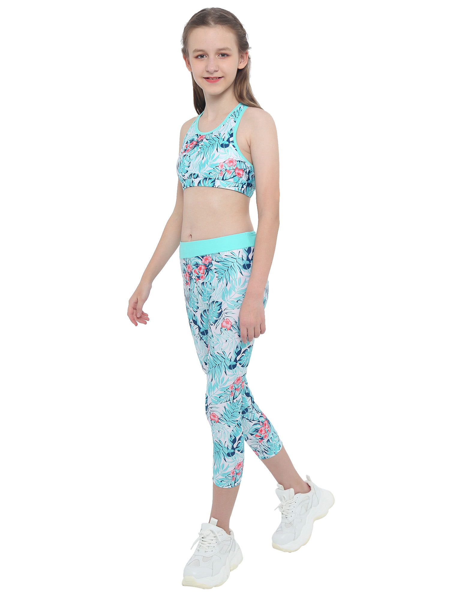 Комплект для девочек: Топ без рукавов с u-образным вырезом, топ на бретельках с высокой талией и штаны с эластичным поясом.