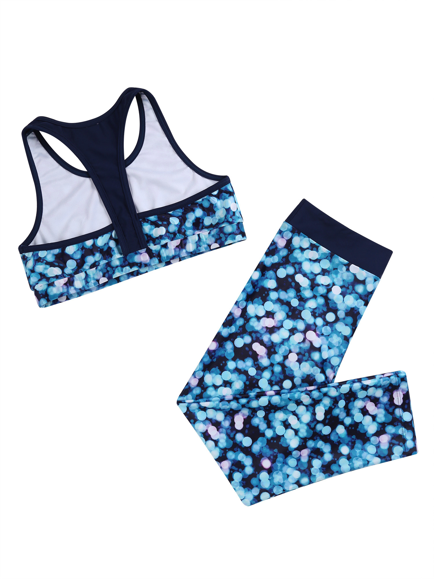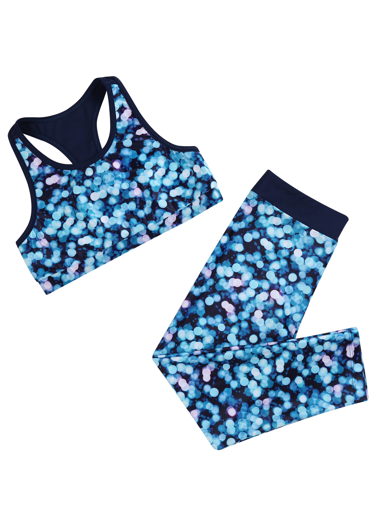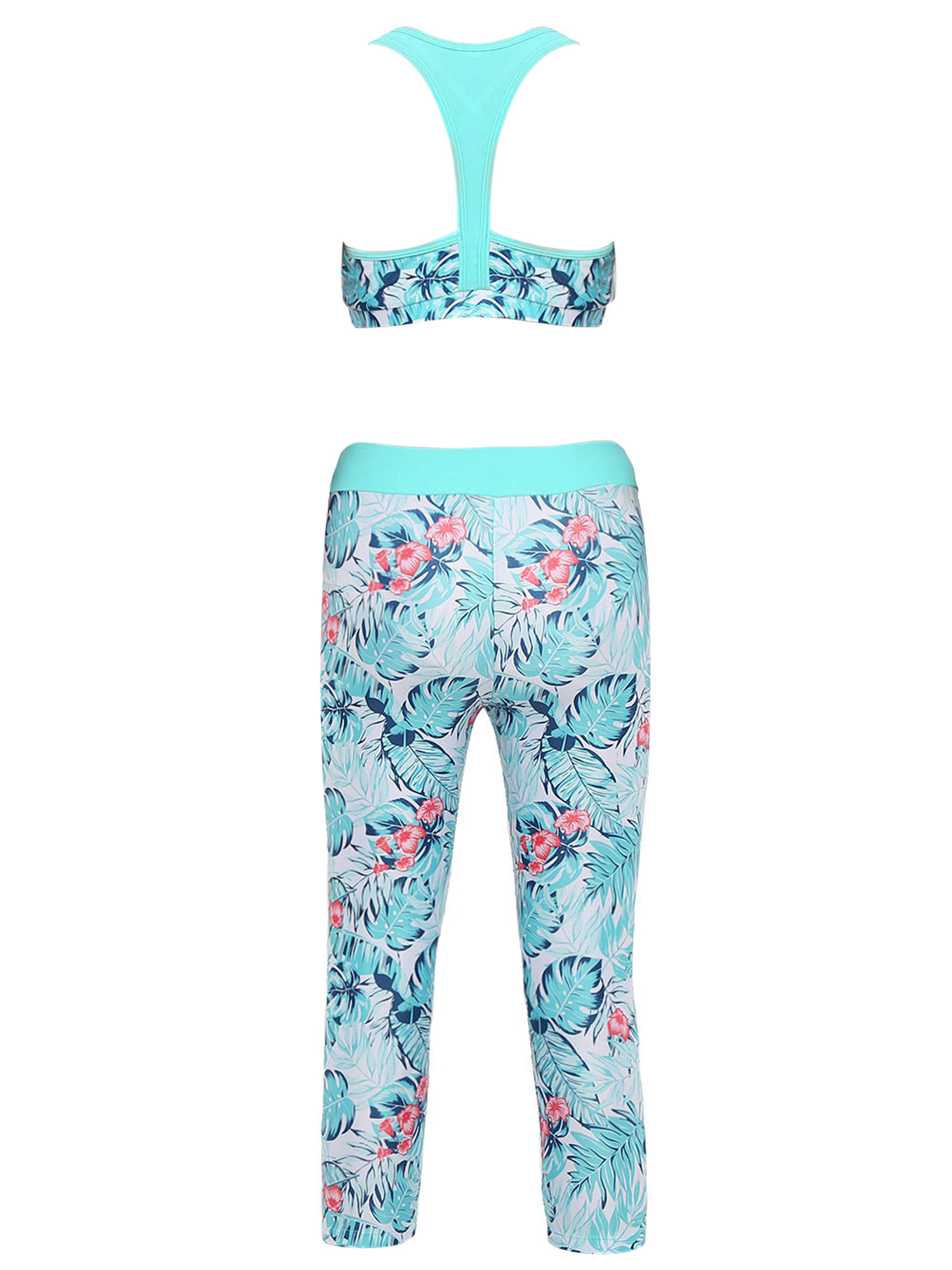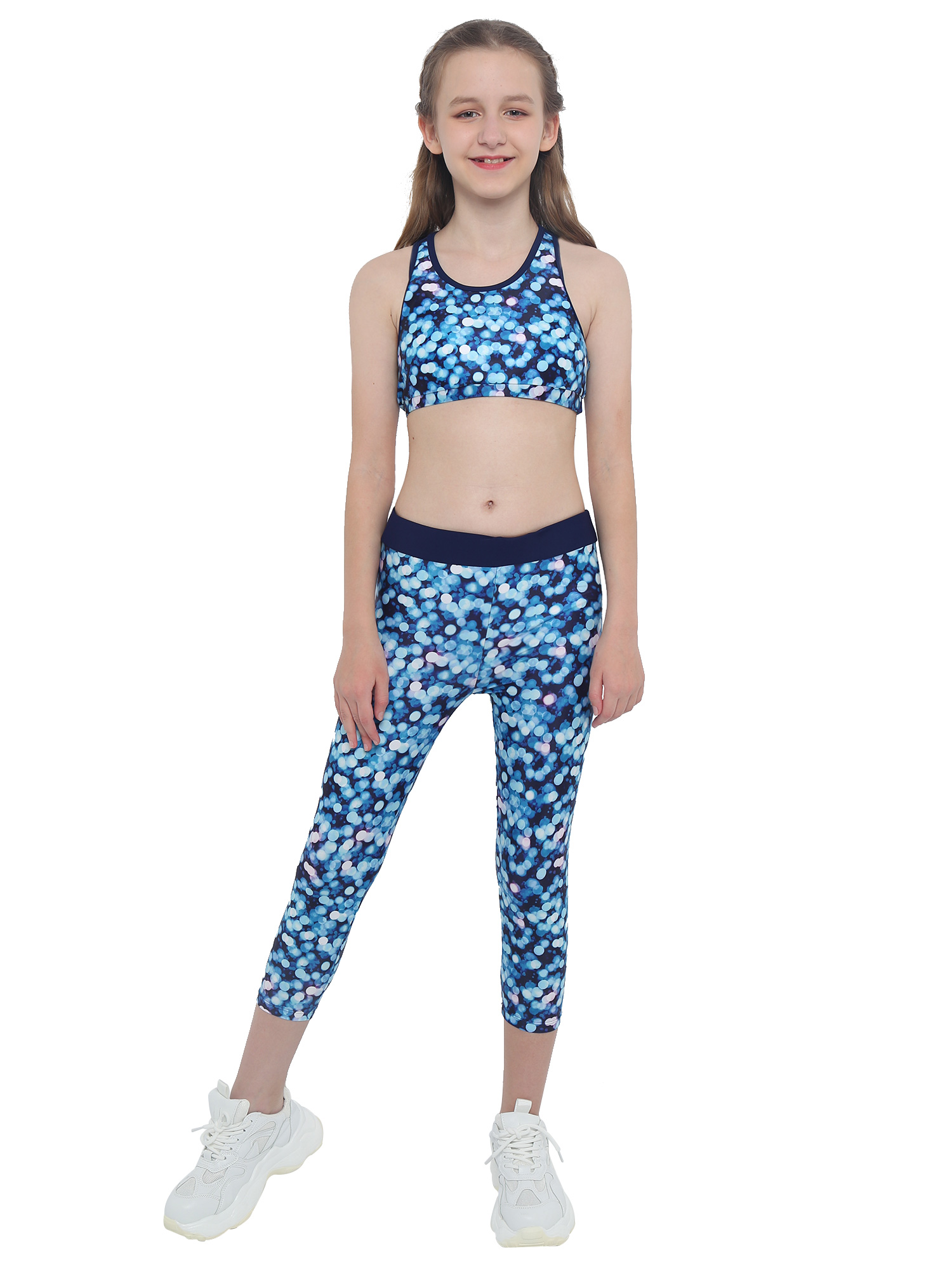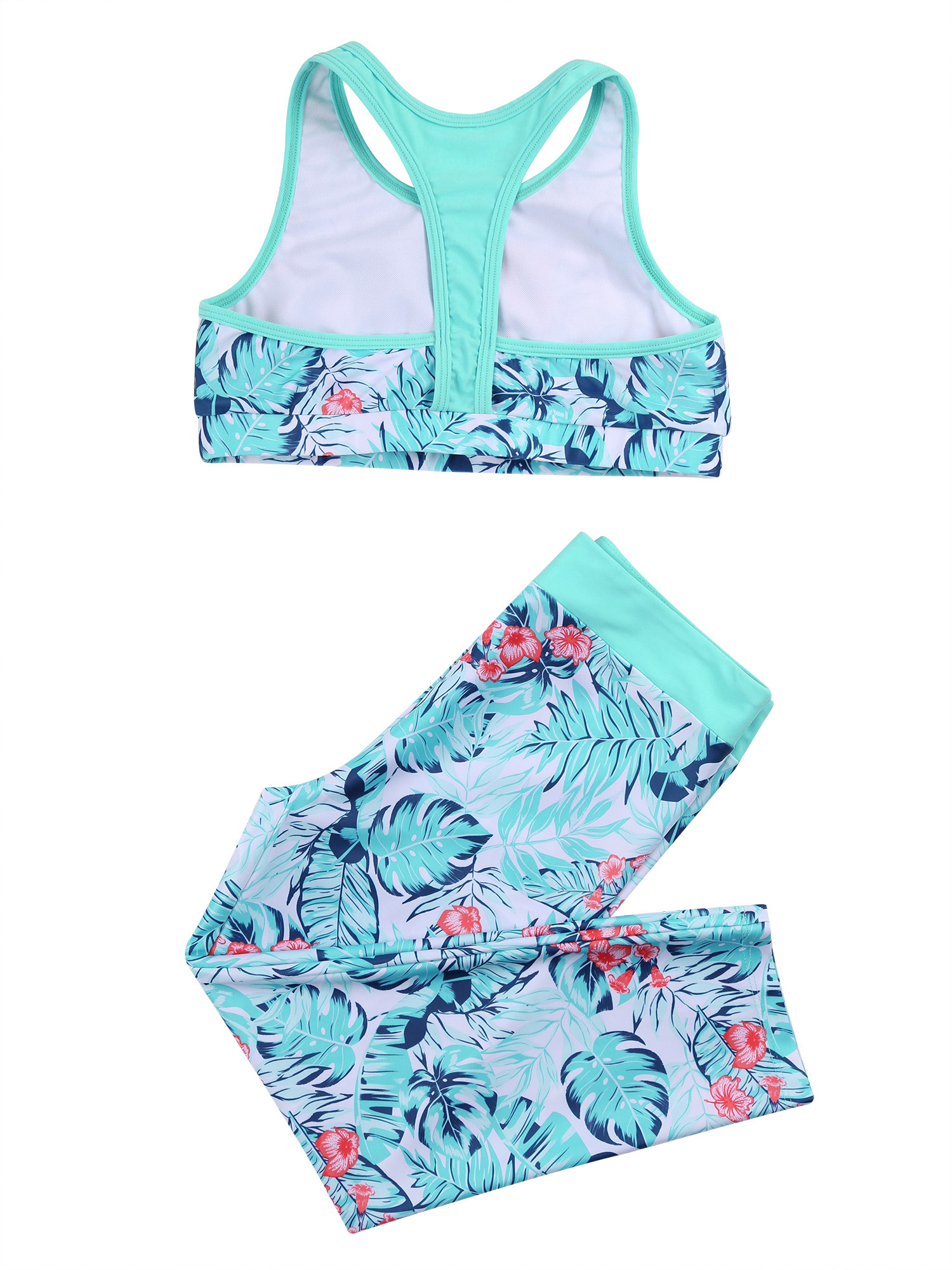 Комплект для девочек: Топ без рукавов с u-образным вырезом, топ на бретельках с высокой талией и штаны с эластичным поясом.