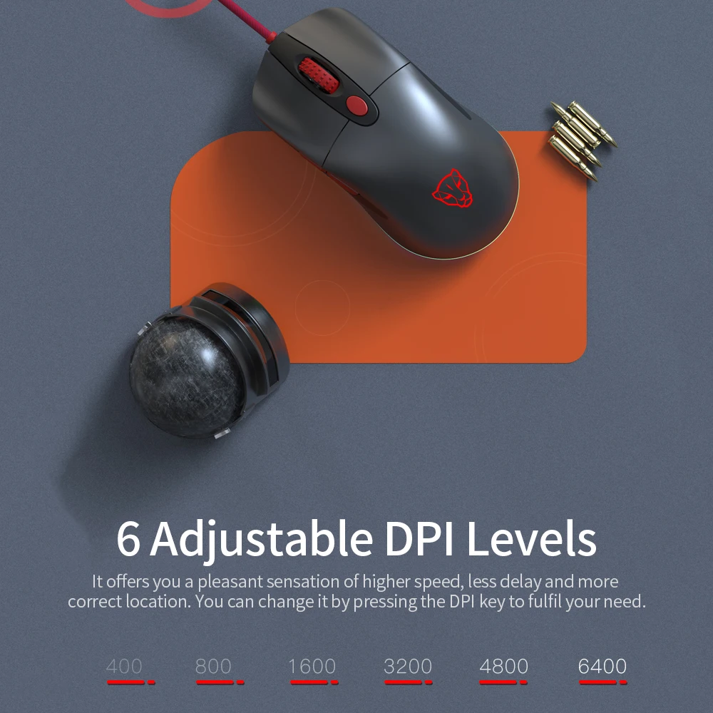 6 Регулируемых уровней DPI.Это дает вам приятное ощущение более высокой скорости, меньшей задержки и более правильного расположения. Вы можете изменить его, нажав клавишу DPI, чтобы удовлетворить ваши потребности.