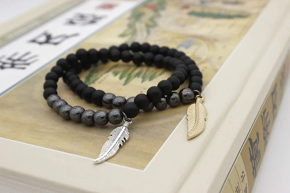 Золотые Серебряные Листья браслет для мужчин и женщин 6 мм браслеты с бусинами из натурального камня ювелирные изделия для pulsera hombre повязки аксессуары