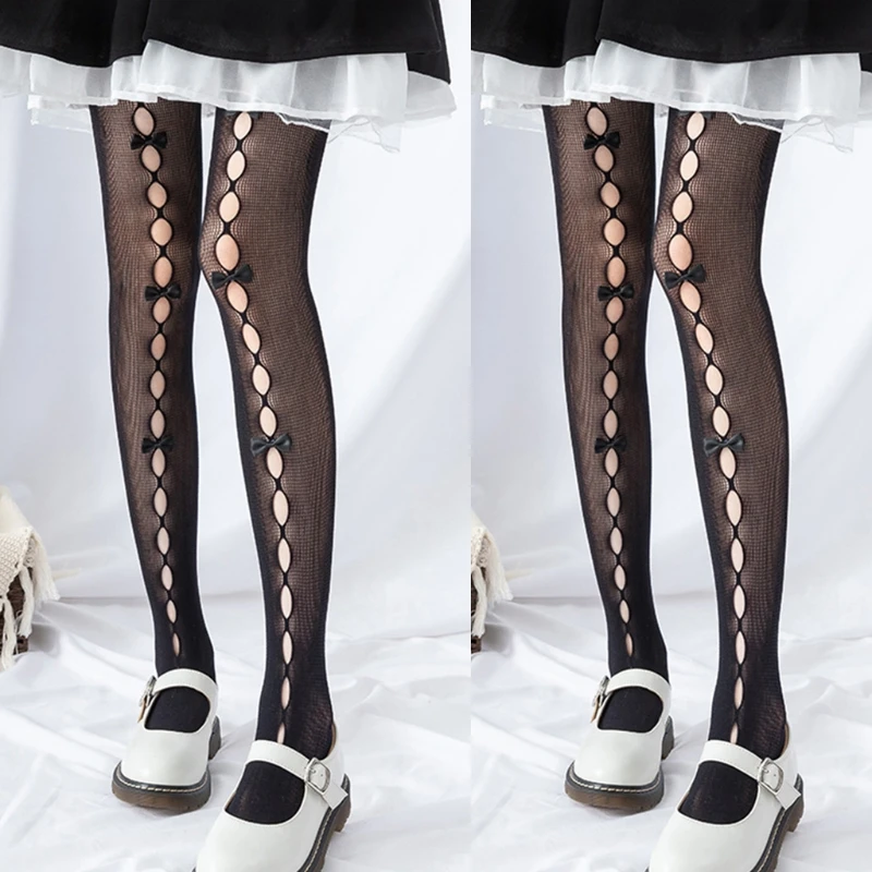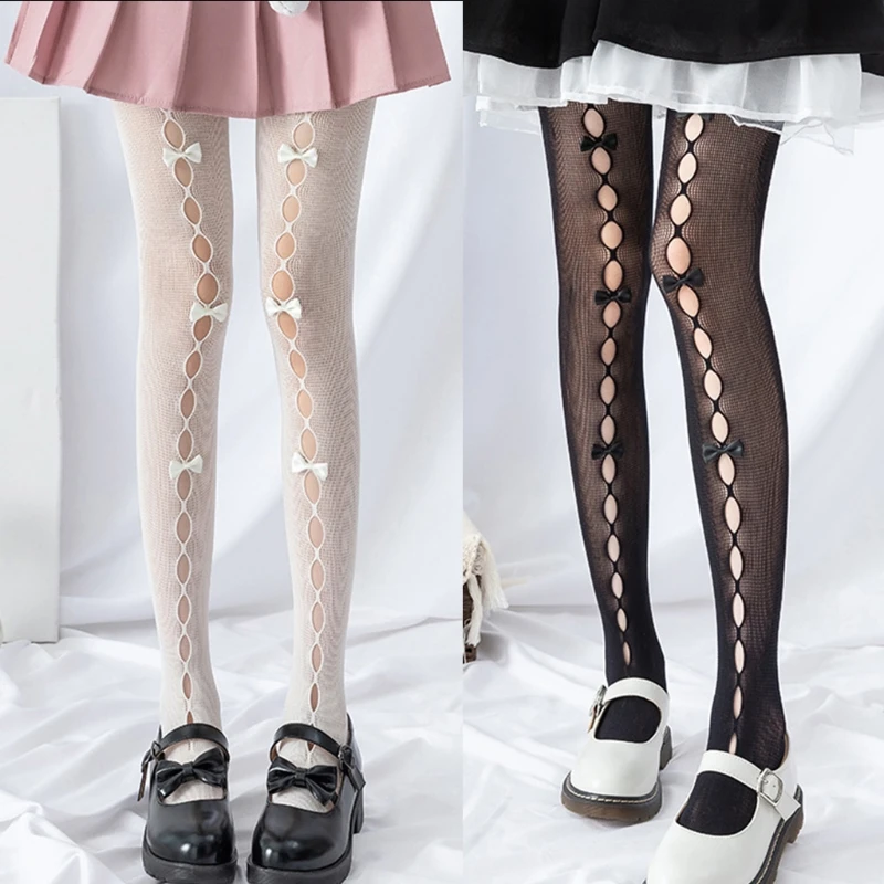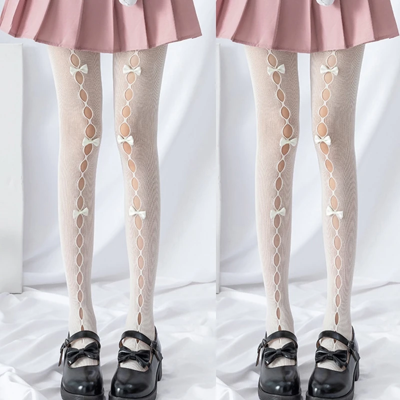 Японский стиль; Ажурный дизайн спереди; Милые Украшенные бантом ручной работы; Чулки в сеточку