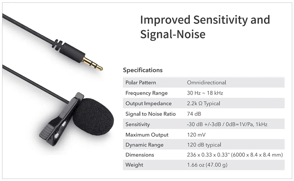 SR-XLM1 Saramonic-это высококачественный микрофон lavalier, предназначенный для незаметного и портативного использования с DSLR камерами, видеокамерами, регистраторами и Saramonic устройствами. SR-XLM1 имеет зажим с отворотом в стиле аллигатора для легкого и надежного крепления к вашей рубашке или лацкане и кабель длиной 20 дюймов (6 м) для максимальной свободы движений и доступности. Всенаправленный пикап выравнивает звук, захваченный независимо от положения микрофона, что делает SR-XLM1 невероятно универсальным и идеальным выбором для интервью, подкастов, дикций и других записей без использования рук. SR-XLM1 Saramonic обеспечивает улучшенную чувствительность и более высокое соотношение сигнал/шум по сравнению с другими популярными микрофонами lavalier, такими как Rode smartLav +, при этом только половина цены. В настоящее время это лучшая производительность/стоимость на рынке.