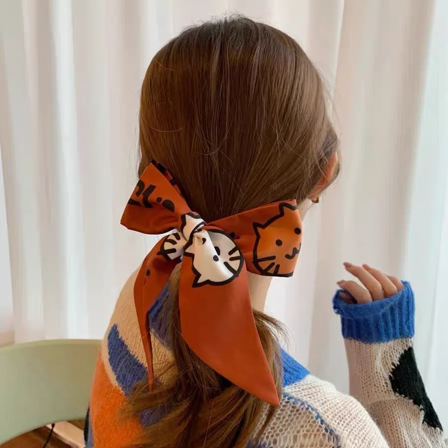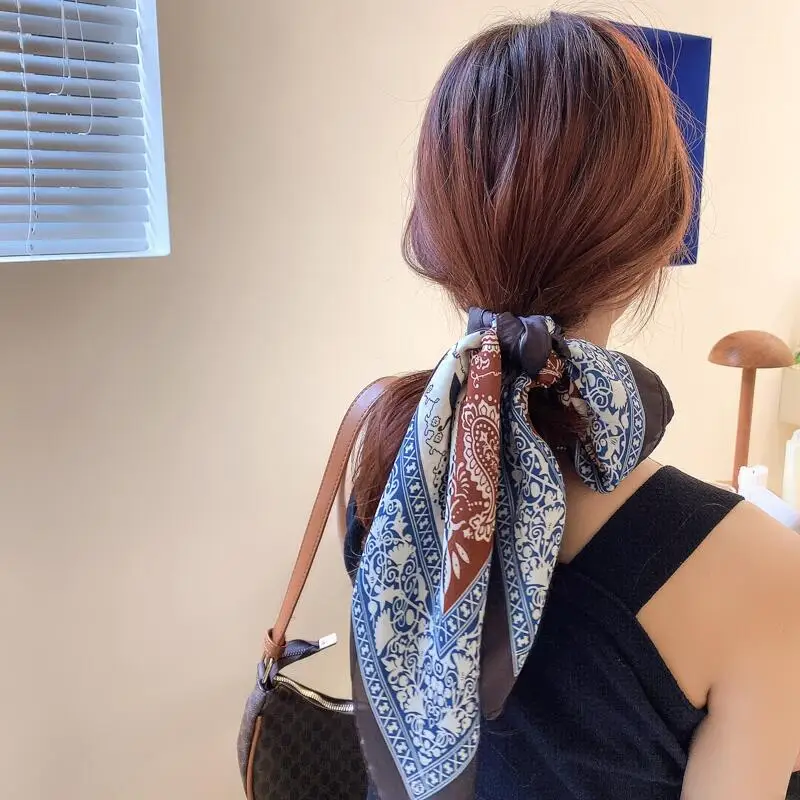 Резинка для волос с цветочным принтом, шелковая эластичная резинка для волос для женщин, женский шарф для волос, банты, резиновые веревки