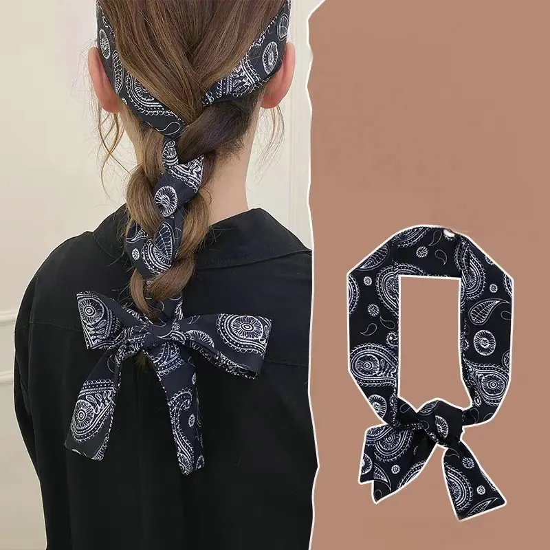 Женские резинки с цветочным принтом и бантом? Повязка на голову с хвостом для женщин, аксессуары для волос с бантом на резинке