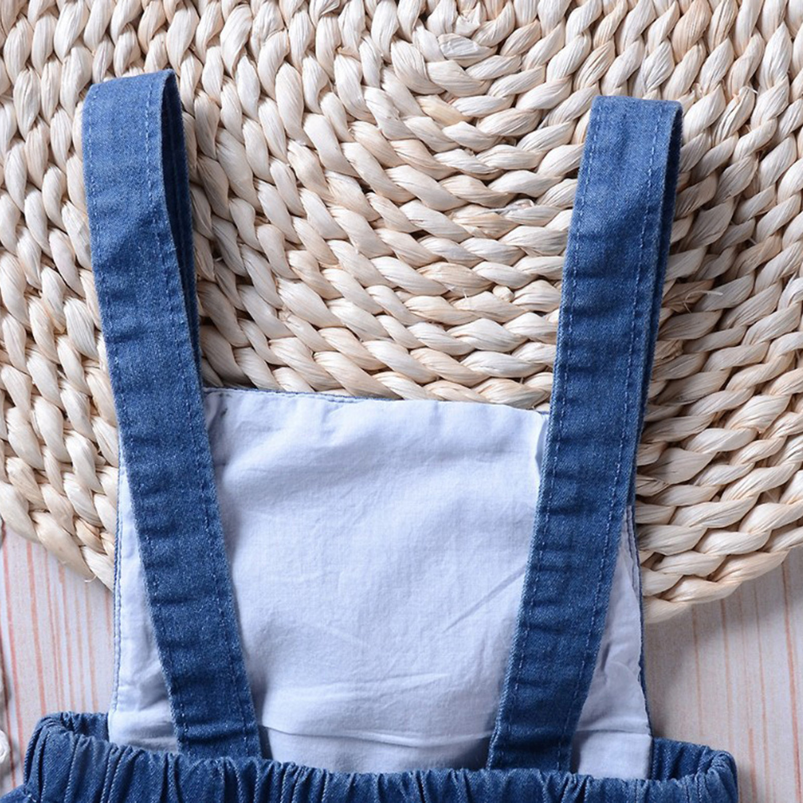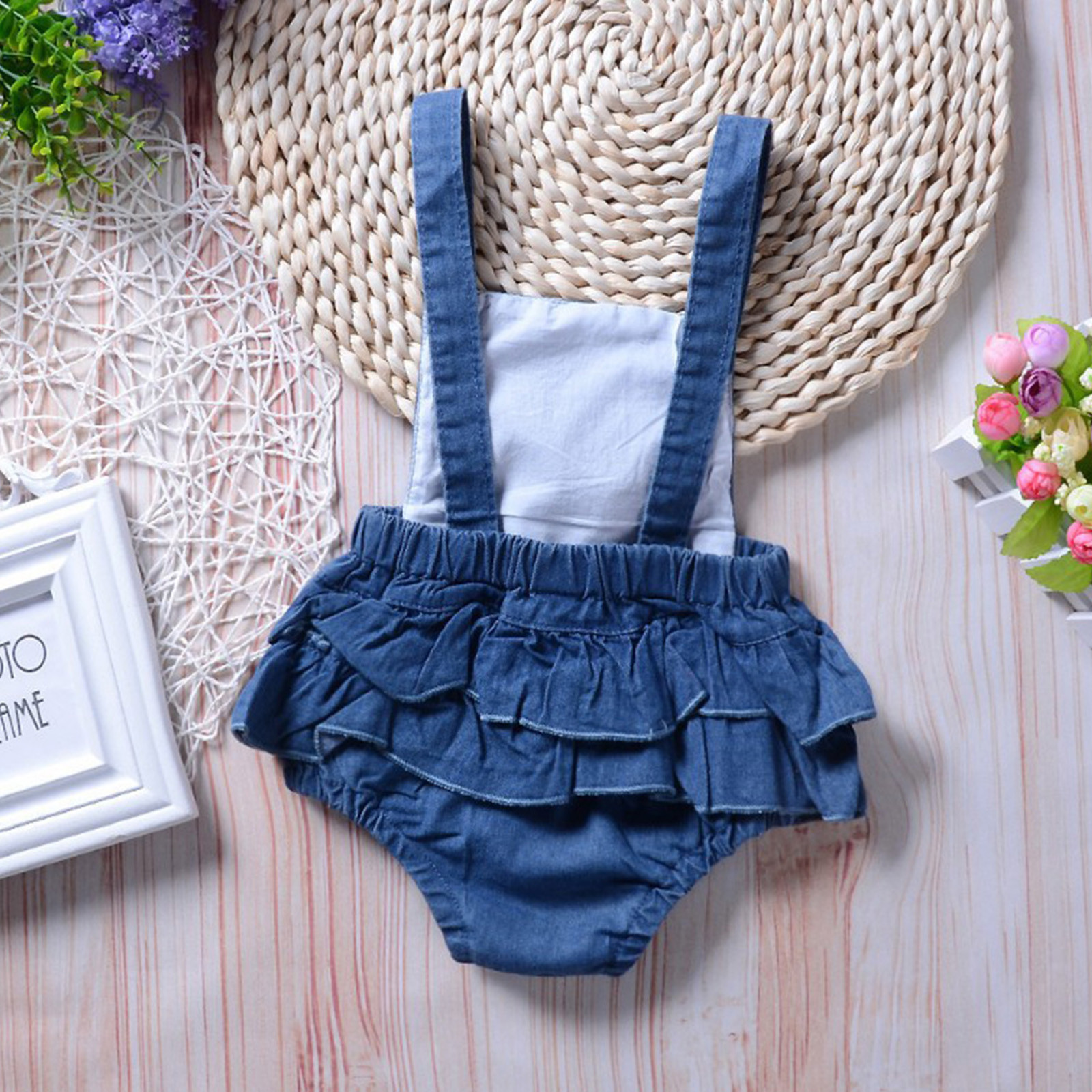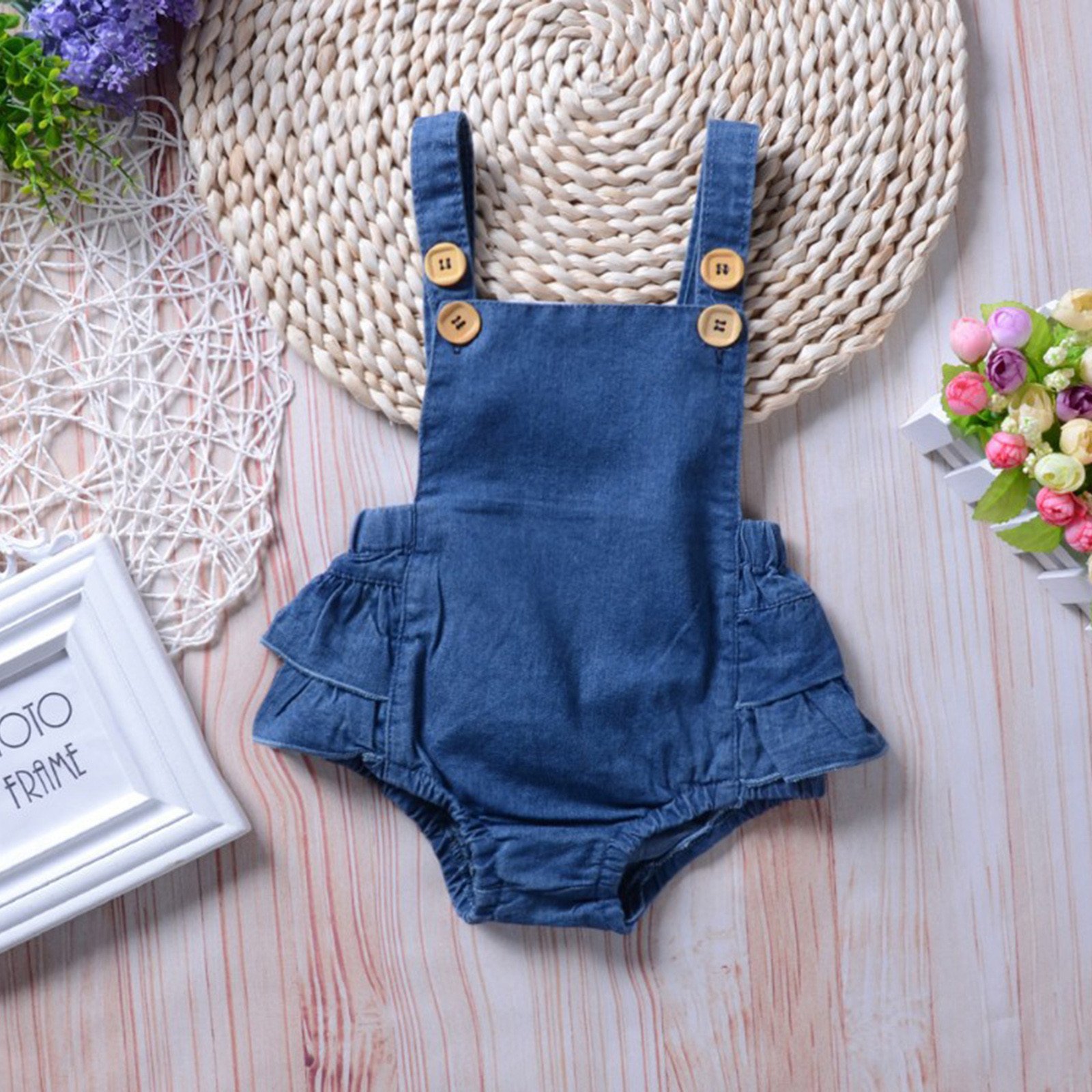 Летний джинсовый однотонный комбинезон с оборками для новорожденных мальчиков и девочек 0-24 месяцев kinderkleding meisjes, модная мягкая одежда, M4