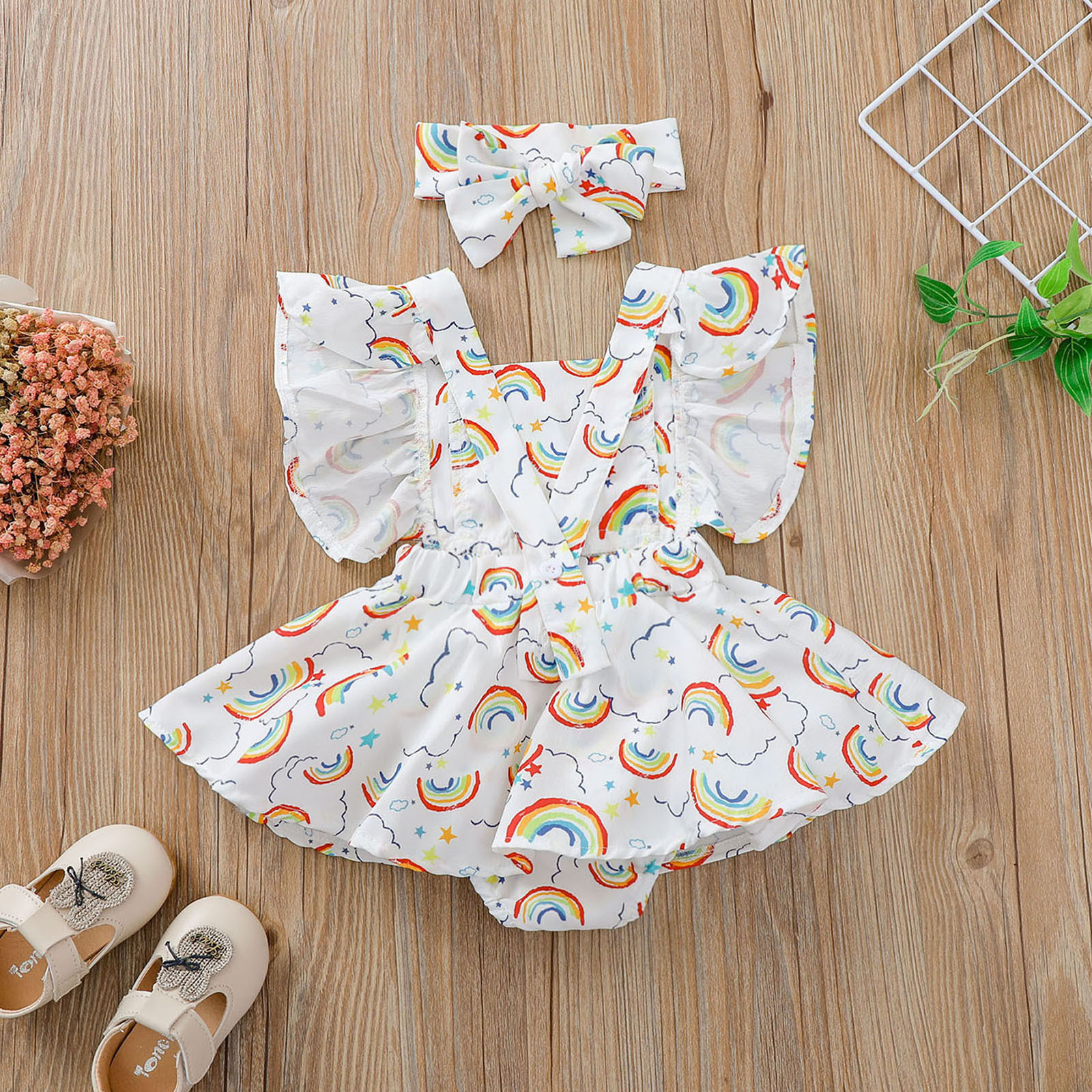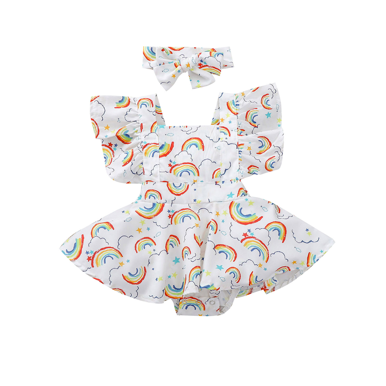 Летний комбинезон на бретелях с открытой спиной и радугой для новорожденных и маленьких девочек 0-24 месяцев, боди, боди, barboteuse M4