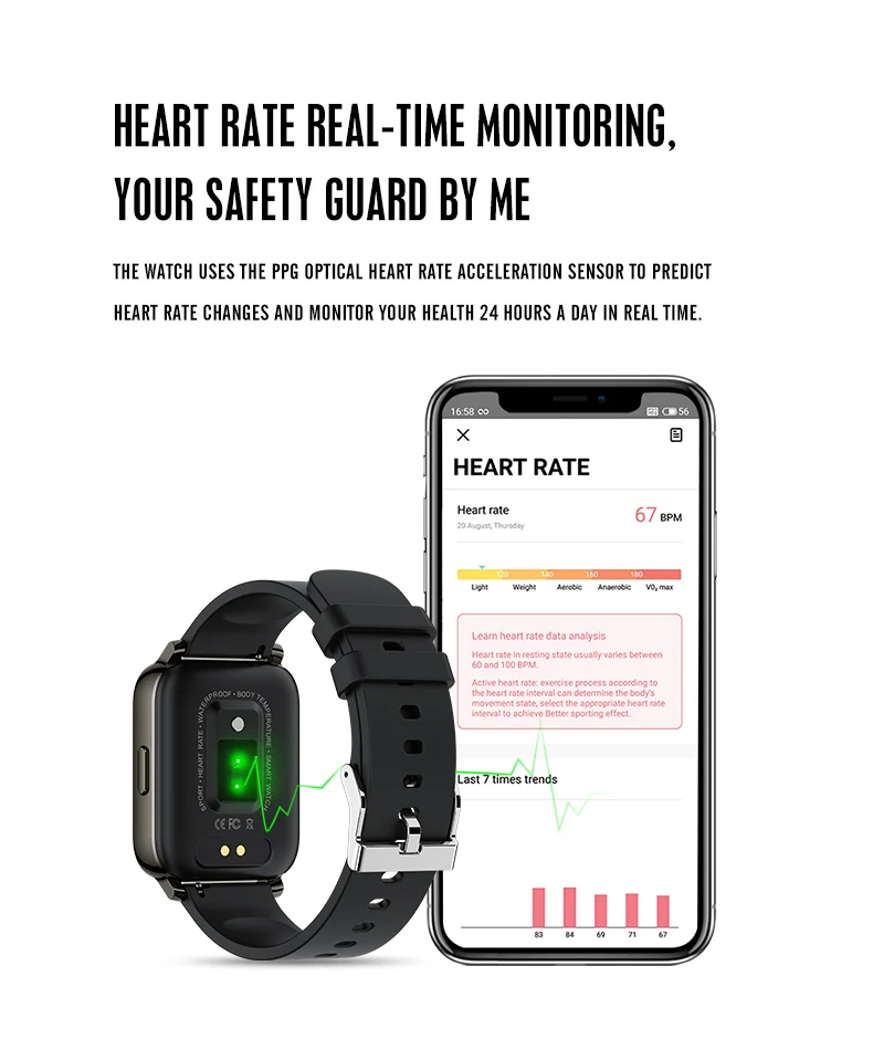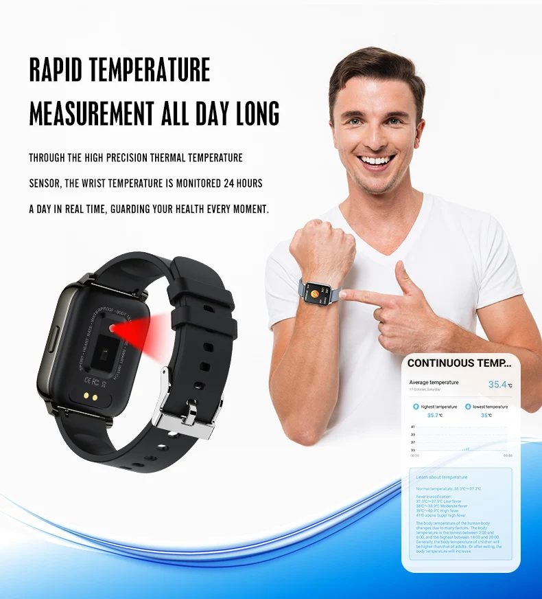 P36T Смарт-часы с функцией измерения температуры тела пульсометр IP67 Водонепроницаемый фитнес-трекер браслет наручные часы кровяное давление часы