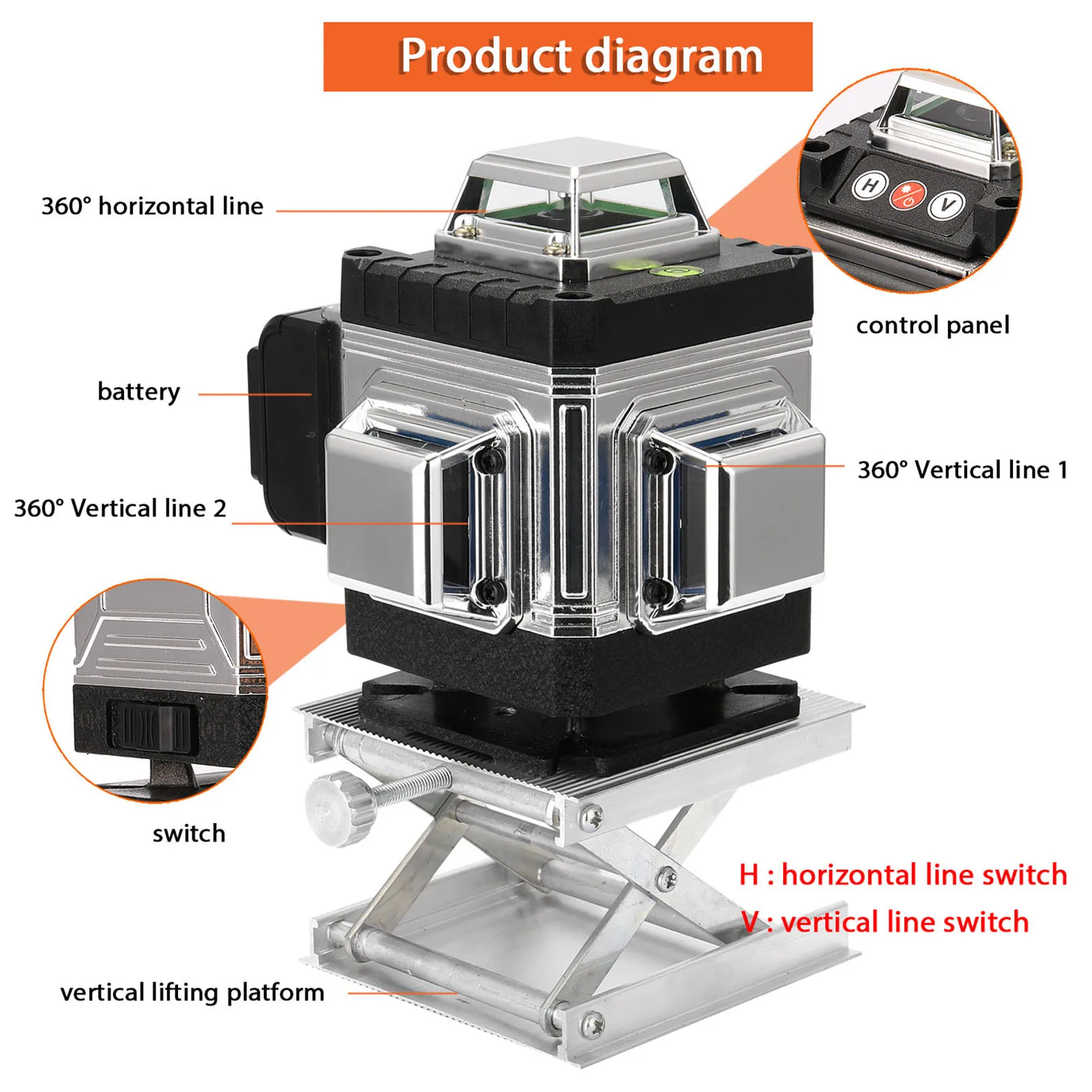 Это своего рода инструмент высокого качества, 4D 16 линий для более точного позиционирования, с самонивелирующейся системой, гибкостью и стабильностью. С вертикальными и горизонтальными лазерными линиями, удобство в использовании. Идеально подходит для различных видов применения, включая напольное покрытие, плитку, обшивку, обшивку стен, обшивку стенок, обшивку, отделку столярных изделий, розетку и раскладку переключателей, обшивку стен и установку перегородок. Вы можете попробовать.