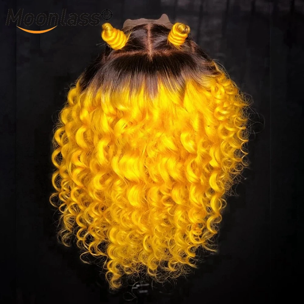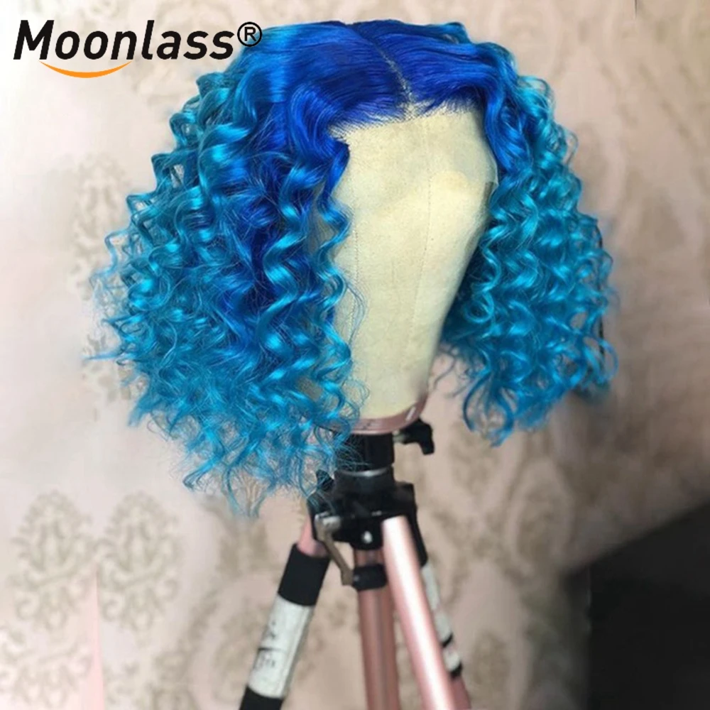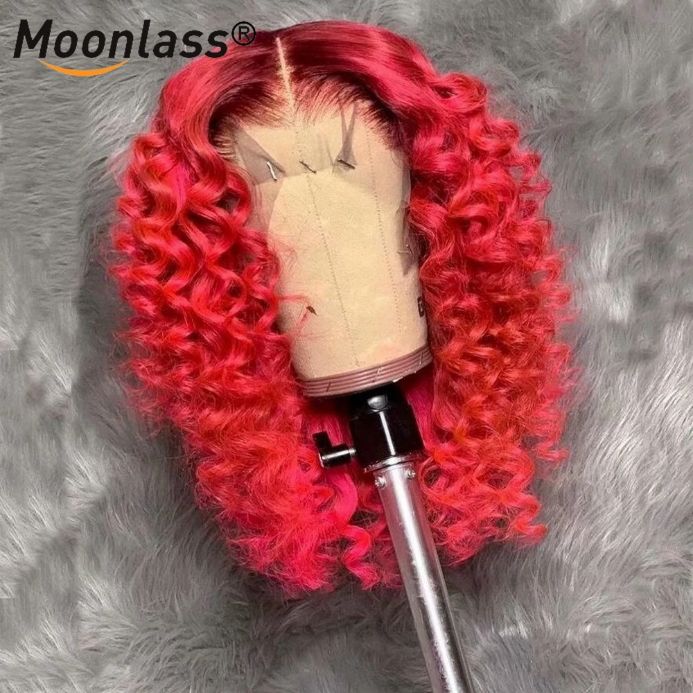 Синий глубокий кудрявый кружевной передний парик Красный Желтый предварительно выщипанный кудрявый парик человеческих волос бразильские Remy 13x4 Омбре кружевные передние человеческие волосы парики