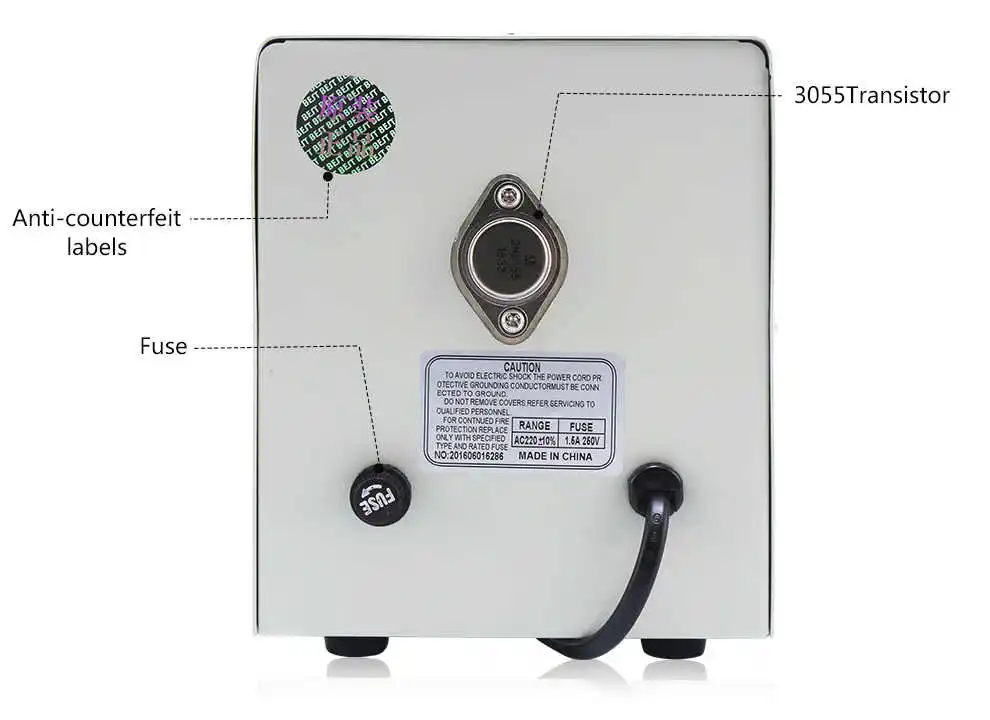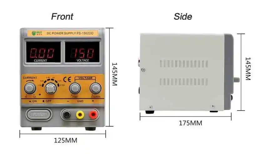 Источник постоянного тока питания 1502DD оснащен шестиразрядным светодиодным дисплеем, который дает актуальную информацию о настройках выходного напряжения и силы тока. Показания тока округляются до сотых долей Ампера, показатели напряжения – до десятых Вольта.