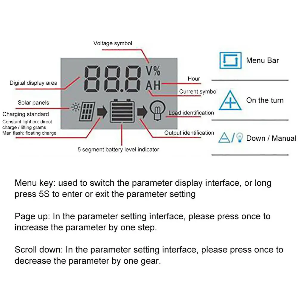 1. Регулятор заряда подходит для свинцово-кислотных батарей: открытых, AGM, геля, гидрида никеля, лития, лиионов или других батарей.