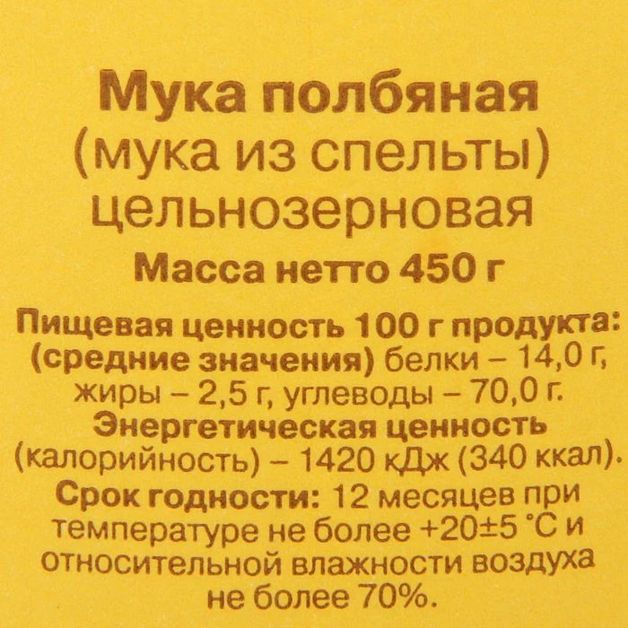 Мука полбяная т.м. "С. Пудовъ", бум/пак, 0,45 кг 2081359