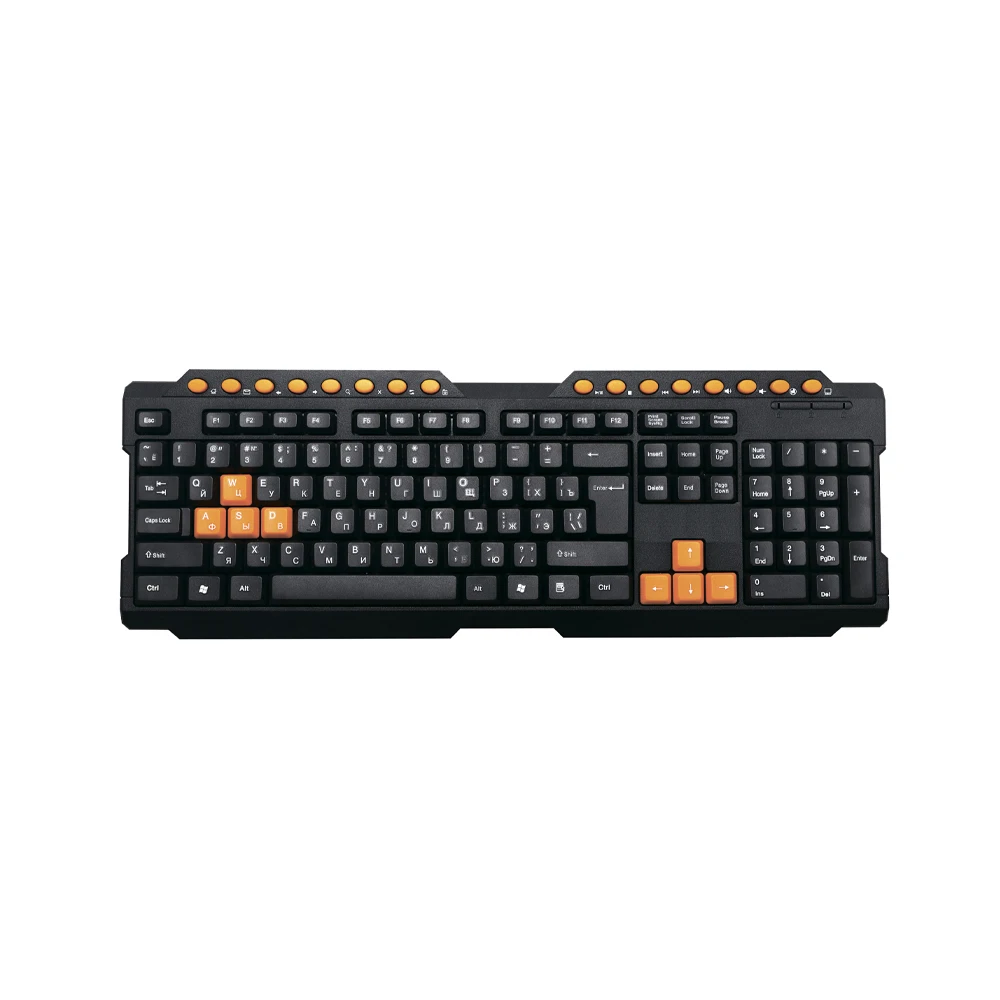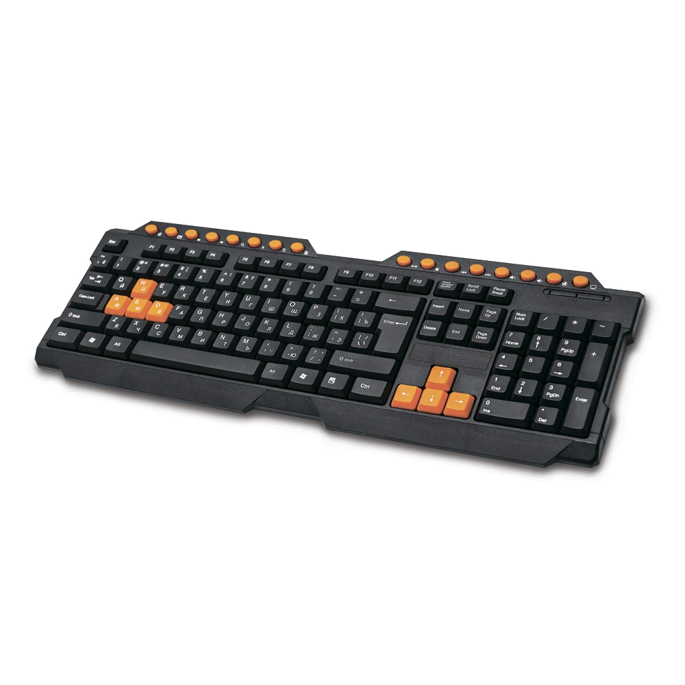 Основные и дополнительные мультимедийные кнопки, которые используются для игр, выделены оранжевым цветом для создания броского, агрессивного внешнего вида.