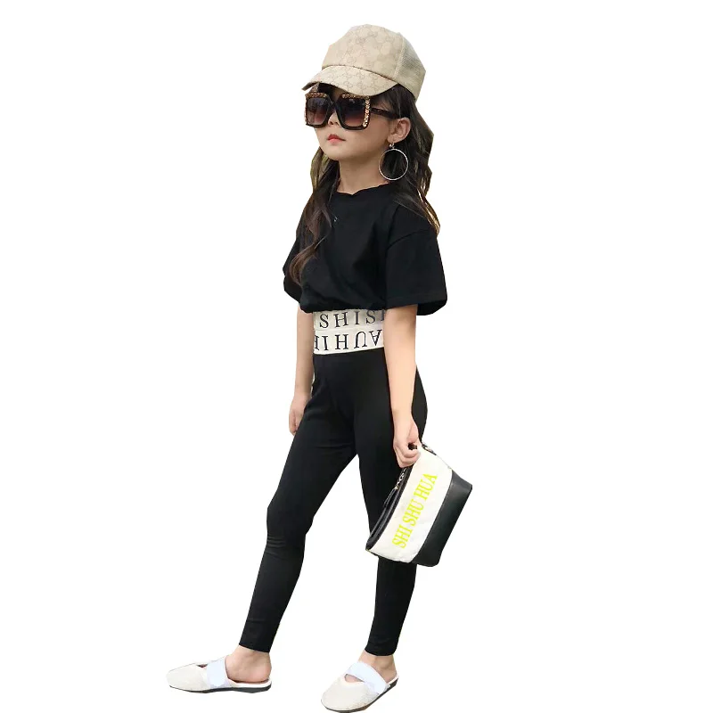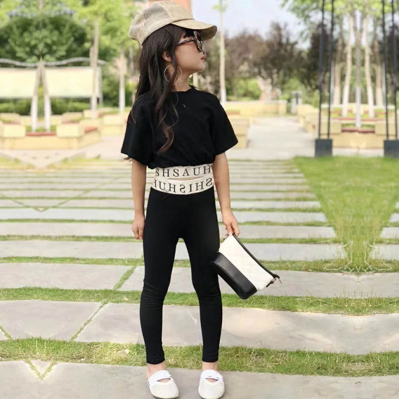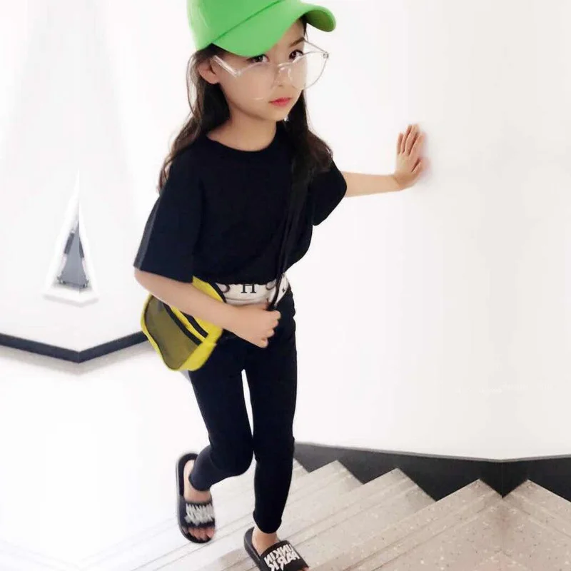 Комплект одежды; Модный классический новый летний свитер для девочек; Футболка; Леггинсы; От 2 до 8 лет для занятий йогой; beibei Качественная детская одежда