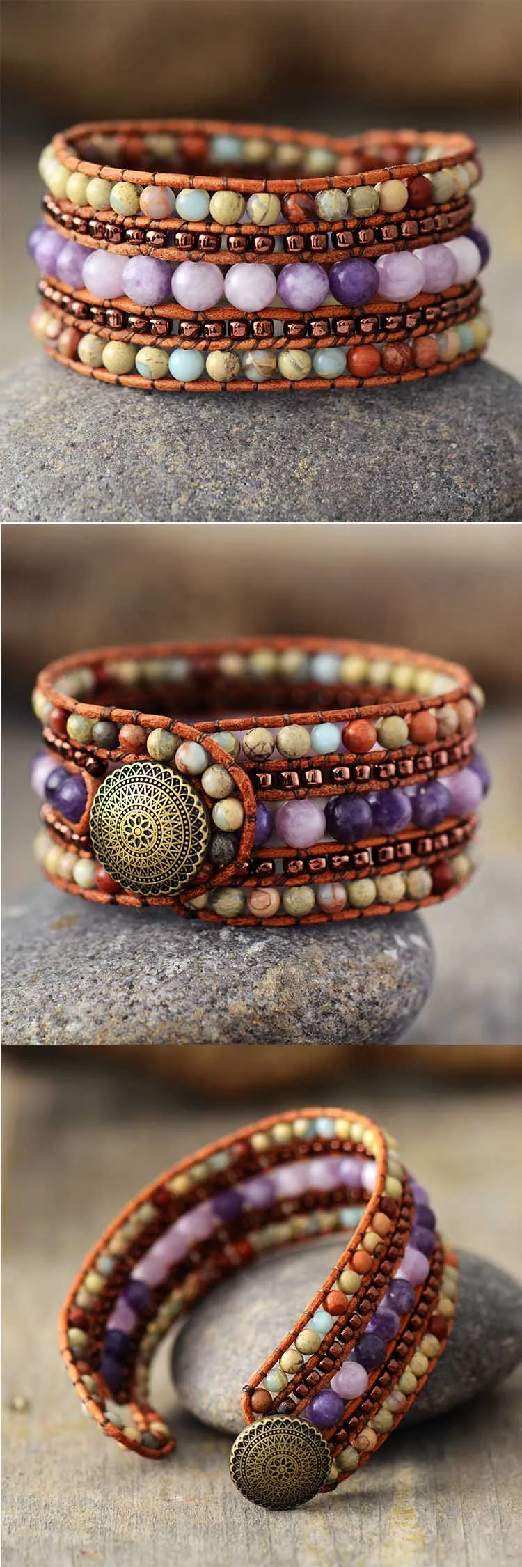 * Тип товара: уникальный браслет-обертка, каменные браслеты с бусинами из кристаллов * Материал: яшма, натуральная кожа, бисер * Техника изготовления: полностью ручная работа * Размеры: около 6,9 дюйм (ов) * Состояние товара: 100% новое и изысканное качество * Таможенное обслуживание: принимаем, пожалуйста, свяжитесь с нами для получения подробной информации перед размещением заказа. Спасибо.