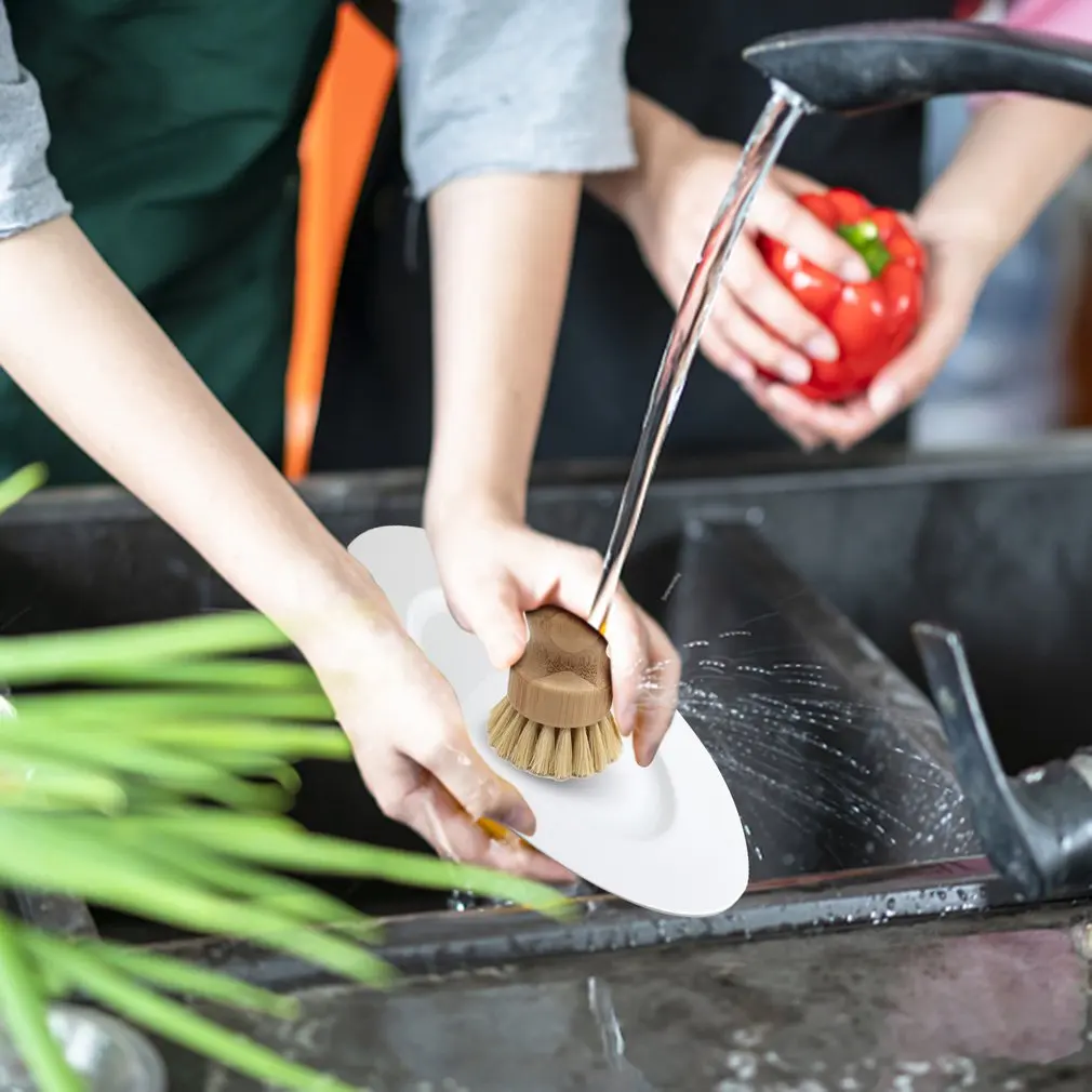 Натуральные прочные щетинки достаточно прочные, чтобы легко удалить застрявшие пятна. Деревянные щетки-это мощные инструменты для очистки посуды, кастрюль, сковородок и чугуна. Их также можно использовать вне кухни для скраба углов и щелей дома.